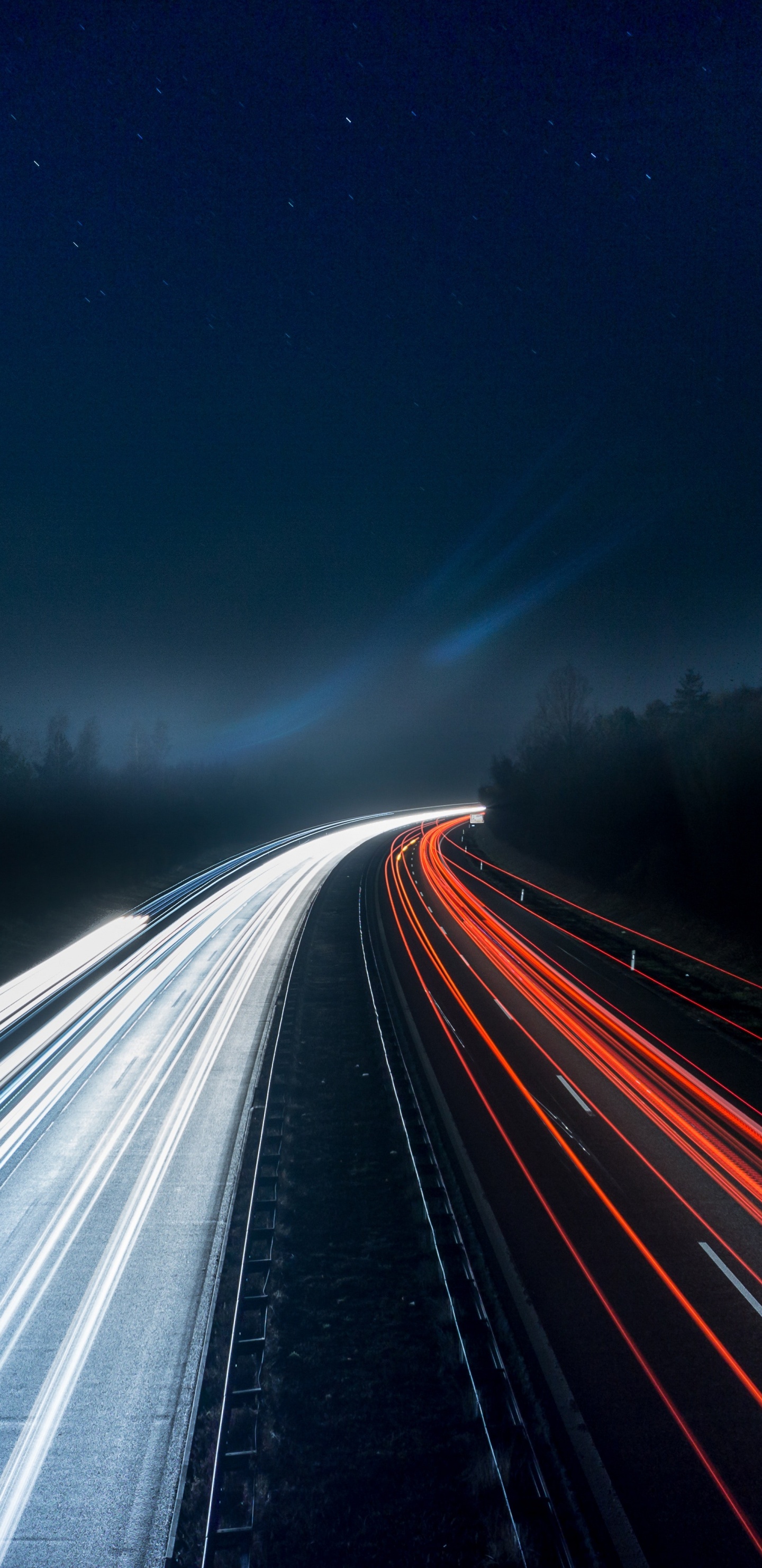 Обои дорога, магистраль, ночь, синий, природа для Samsung Galaxy S8/S8+/S9/S9+/Note 8/Note 9 QHD, заставка, 1440x2960 картинка