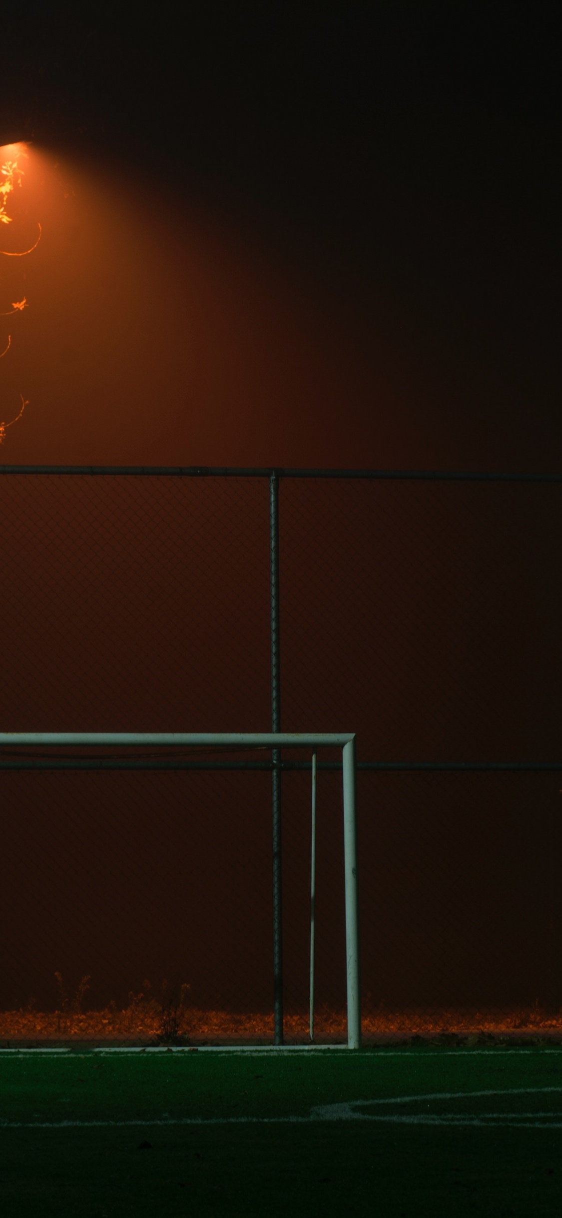 Обои футбольное поле, цель, стадион, свет, ночь для iPhone X / XS, заставка, 1125x2436 картинка