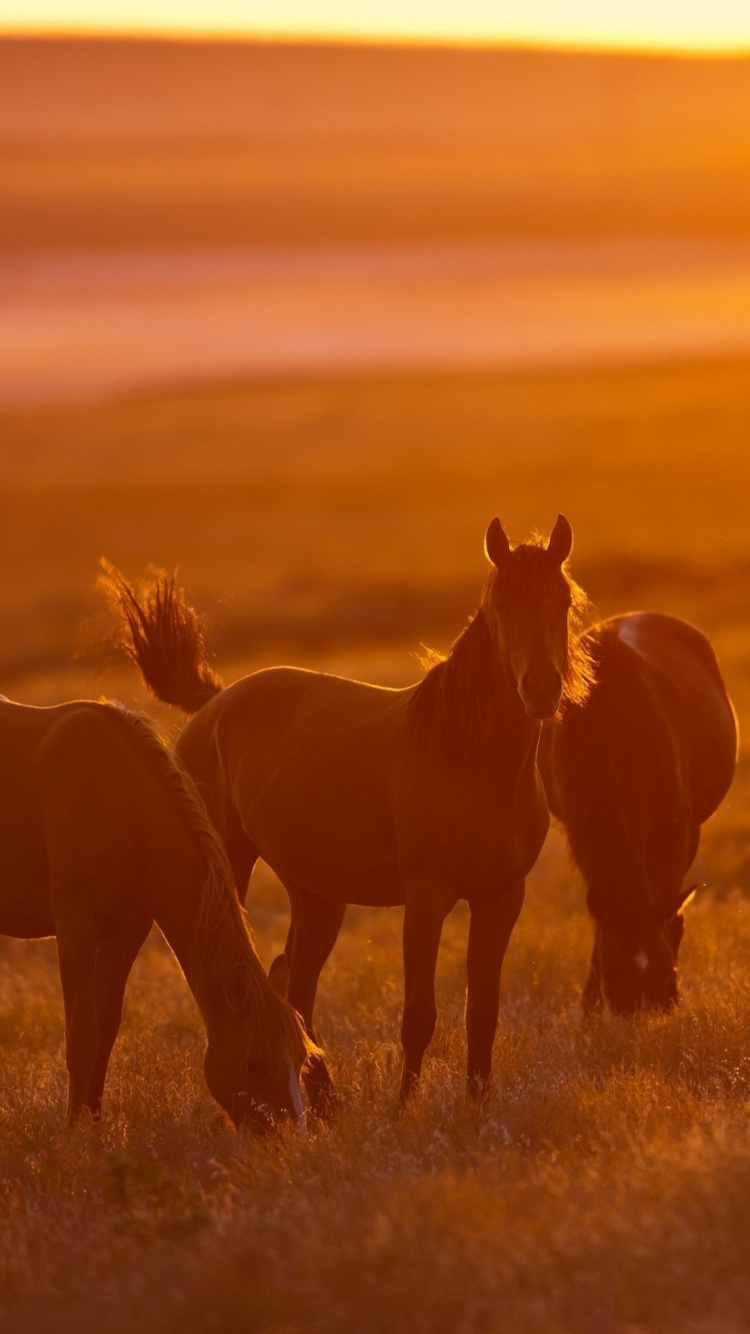 Обои конь, живая природа, сенокосное угодье, стадо, экорегион для iPhone 6, 6S, 7, 8, заставка, 750x1334 картинка