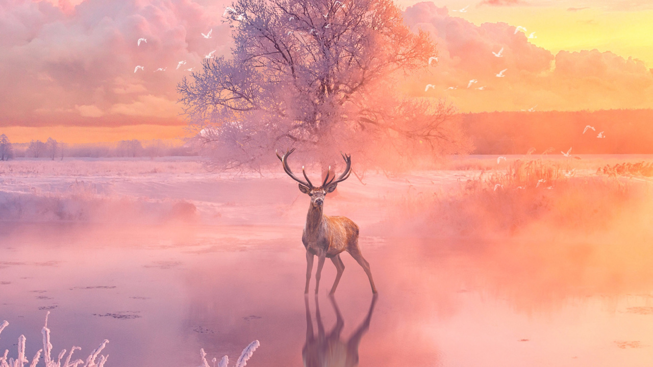 Обои 1280x720 природа, живая природа, атмосфера, олень, олененок, HD, HDV, 720p, 16:9 картинка