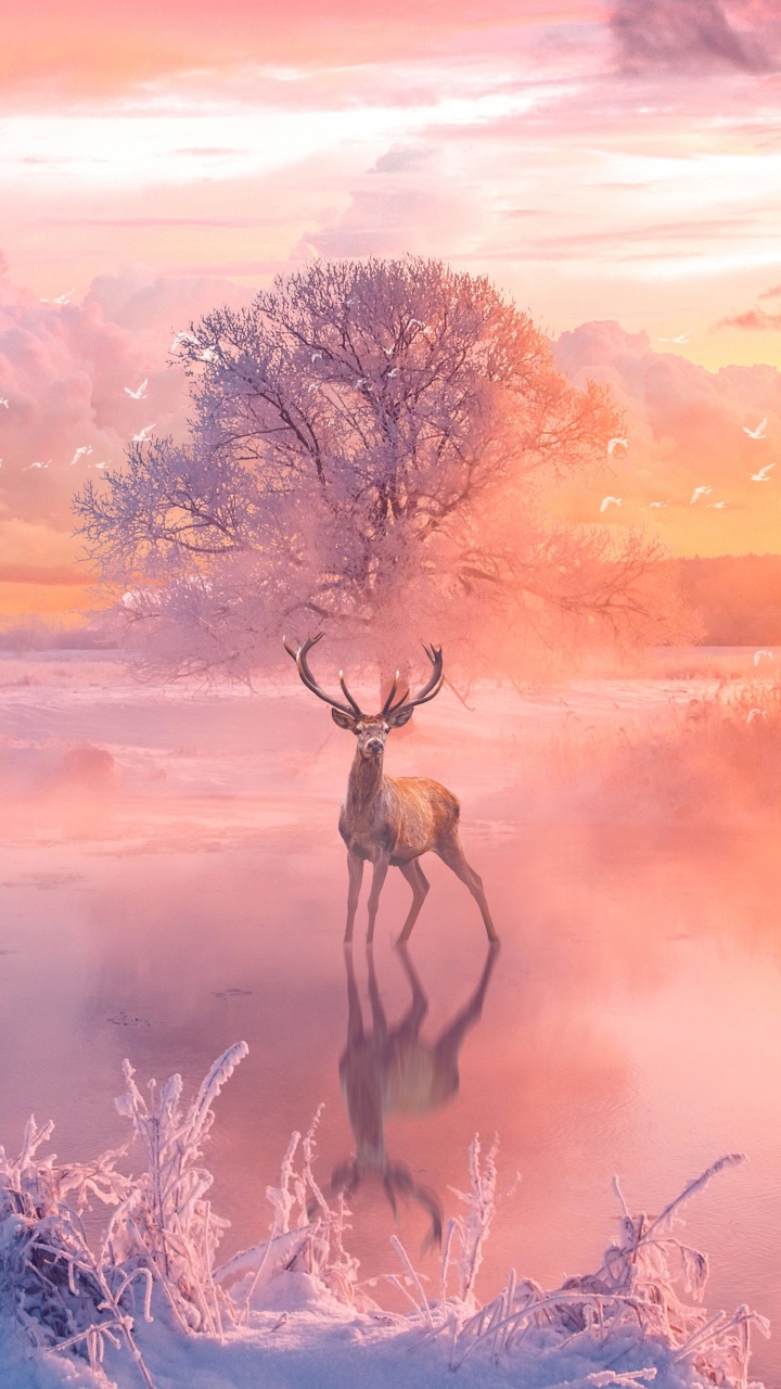 Обои природа, живая природа, атмосфера, олень, олененок для HD Samsung Galaxy S3/J3/J4/J5, Meizu M5, Sony Xperia L1/L2, заставка, 720x1280 картинка