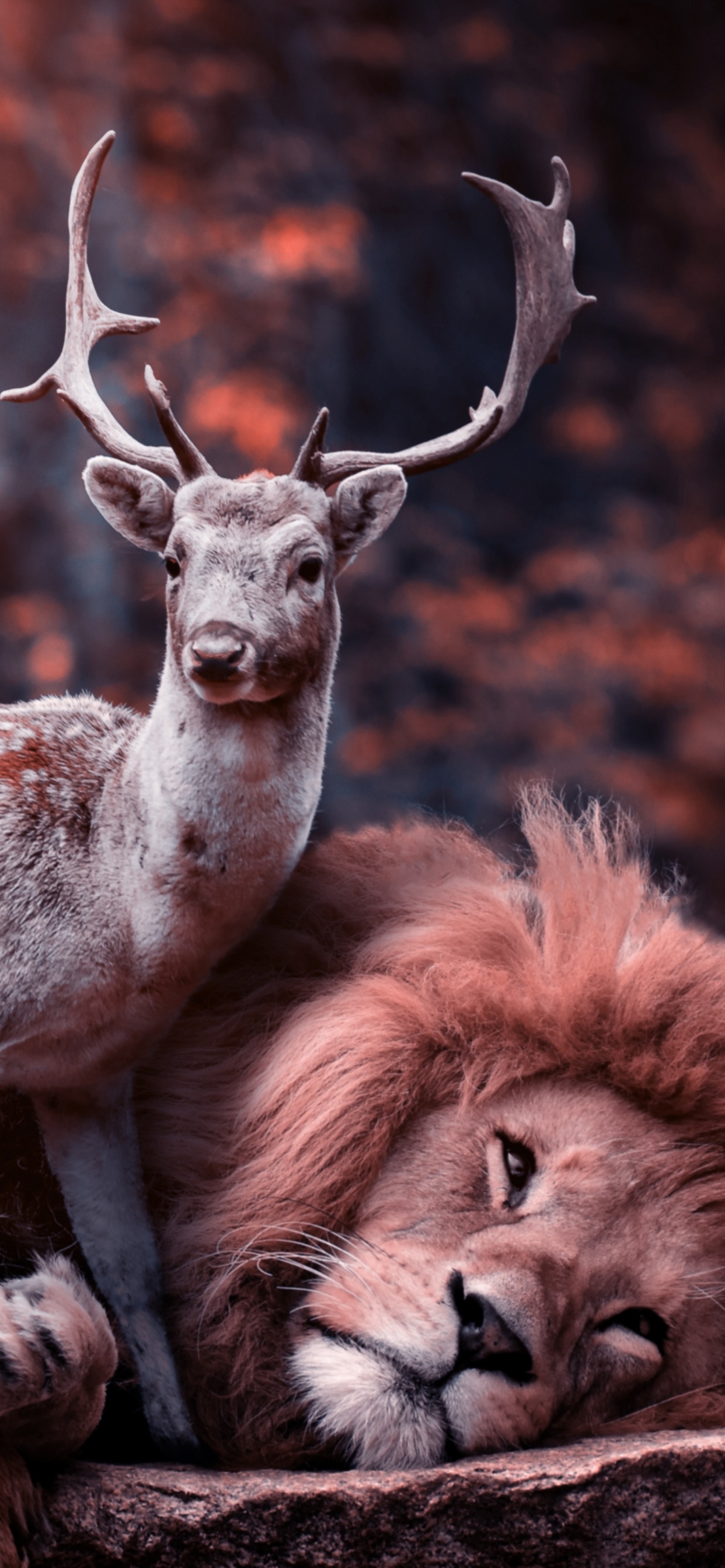 Обои Лев, олень, красный олень, живая природа, Северный олень для iPhone XS Max, заставка, 1242x2688 картинка