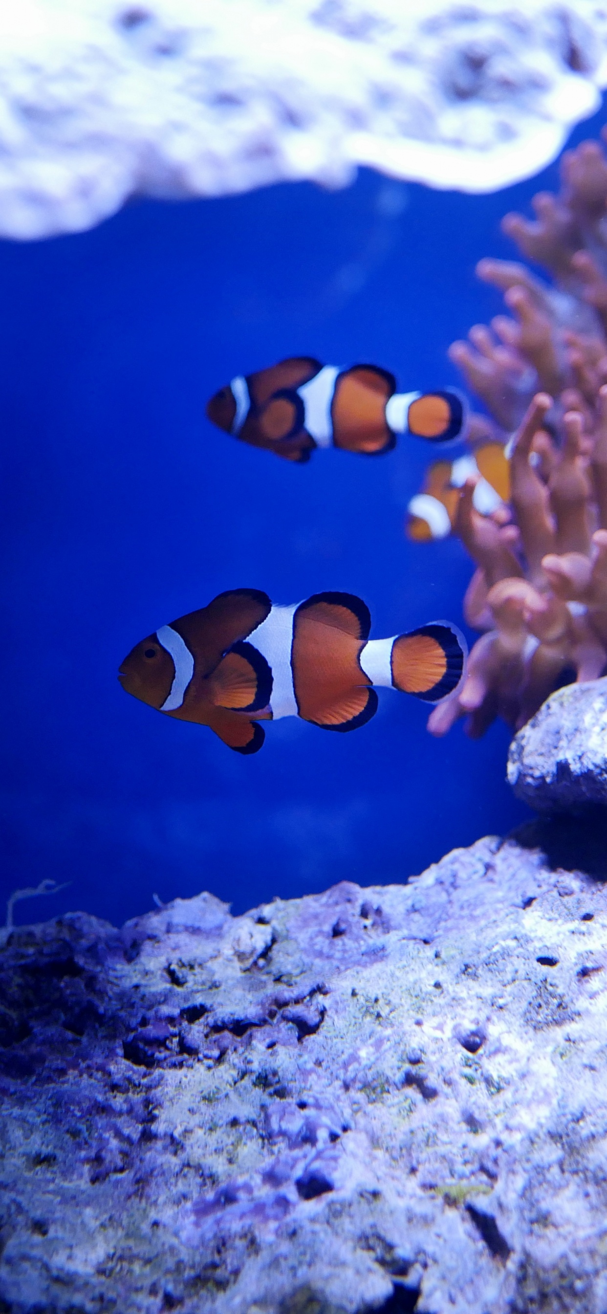 Обои коралловый риф, рыба, окружающая среда, Клоуны оцелярисы, морская биология для iPhone XS Max, заставка, 1242x2688 картинка