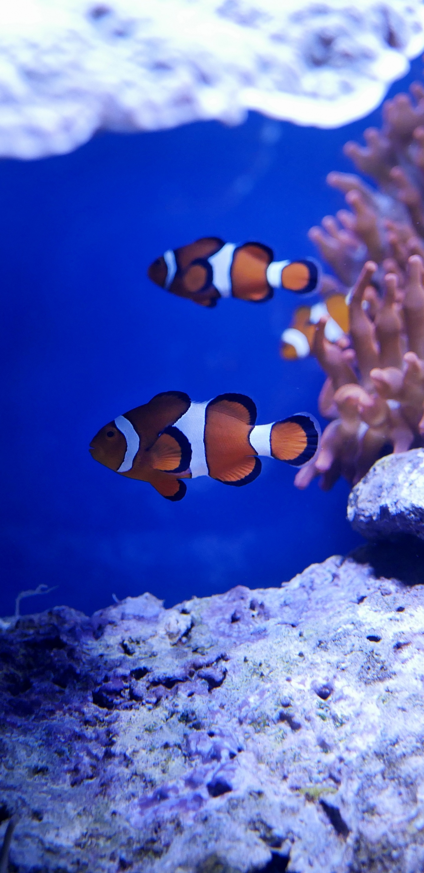 Обои коралловый риф, рыба, окружающая среда, Клоуны оцелярисы, морская биология для Samsung Galaxy S8/S8+/S9/S9+/Note 8/Note 9 QHD, заставка, 1440x2960 картинка