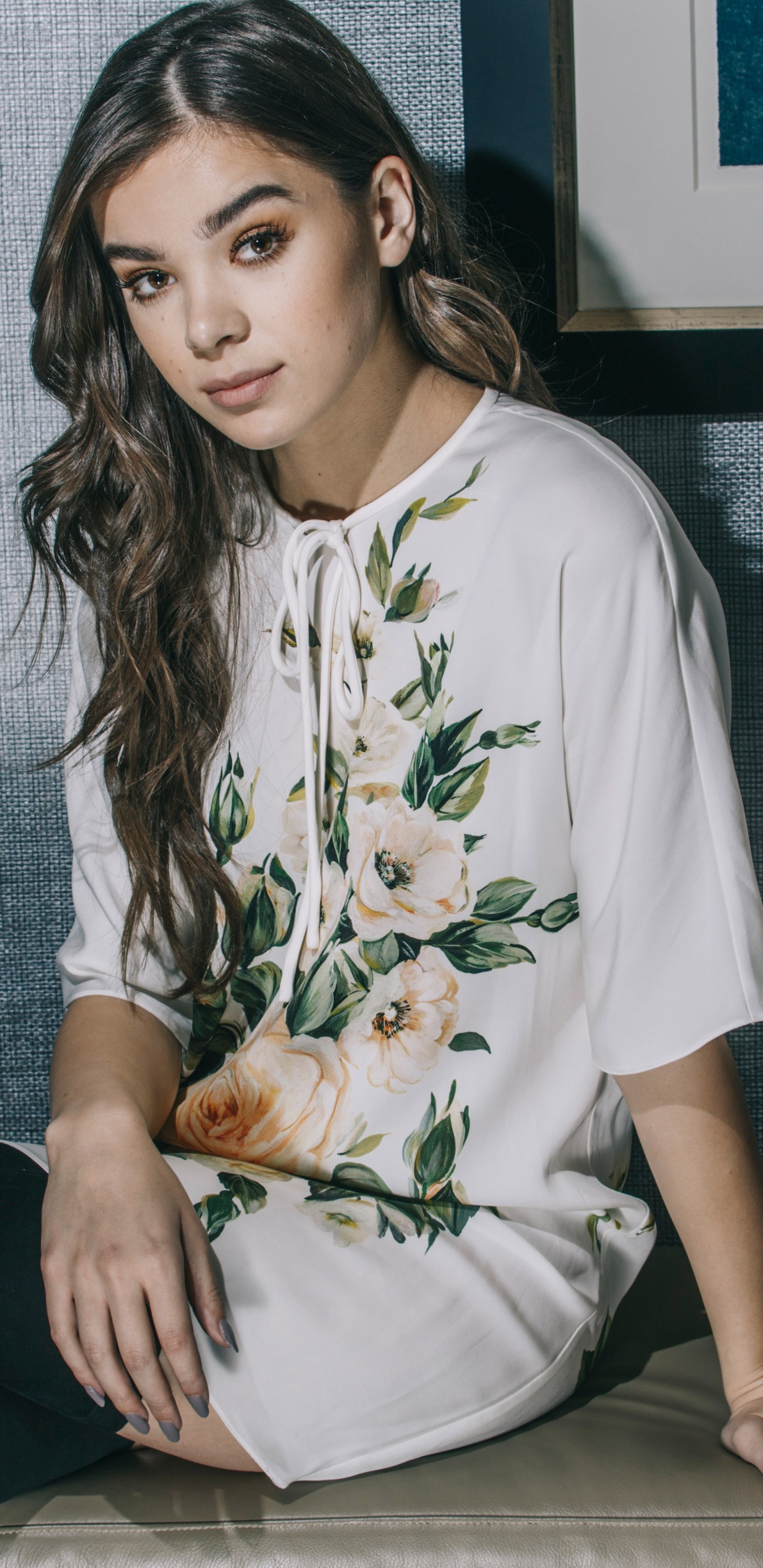 Обои hailee штайнфельд, одежда, сидящий, красота, кожа для Samsung Galaxy S8/S8+/S9/S9+/Note 8/Note 9 QHD, заставка, 1440x2960 картинка