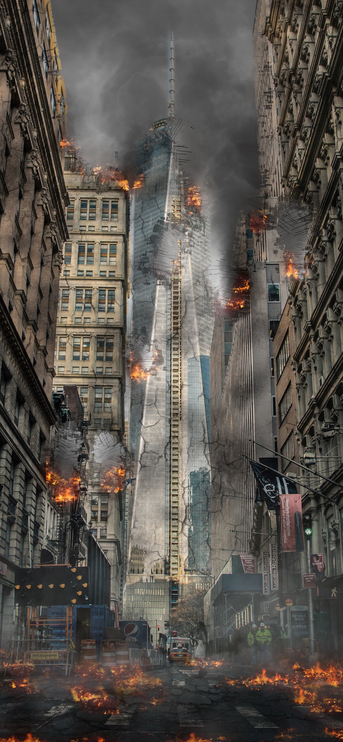 Обои взрыв города, атмосфера, город, бомба, архитектура для iPhone X / XS, заставка, 1125x2436 картинка