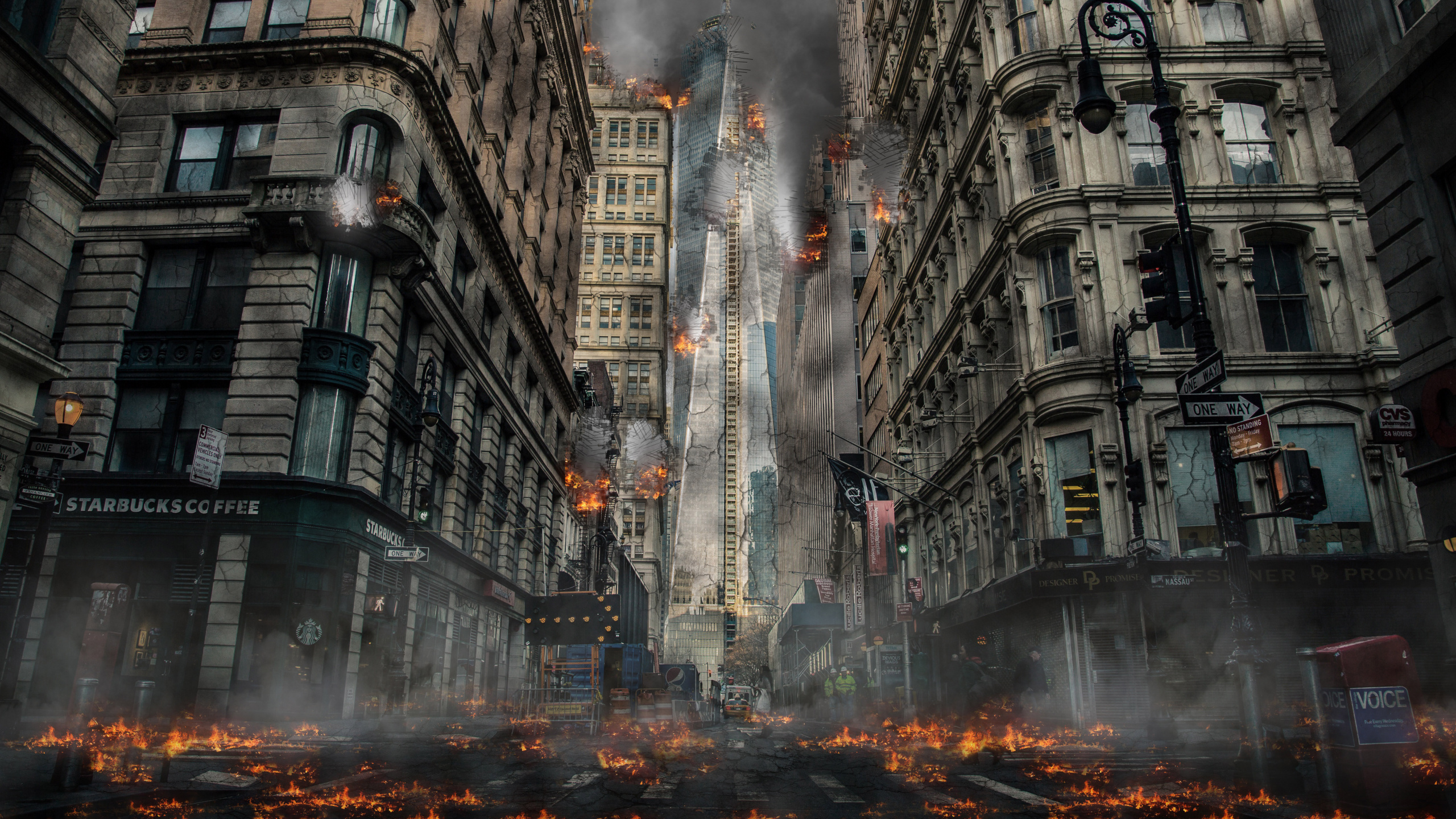 Обои 2560x1440 взрыв города, атмосфера, город, бомба, архитектура, WQHD, QHD, 16:9 картинка