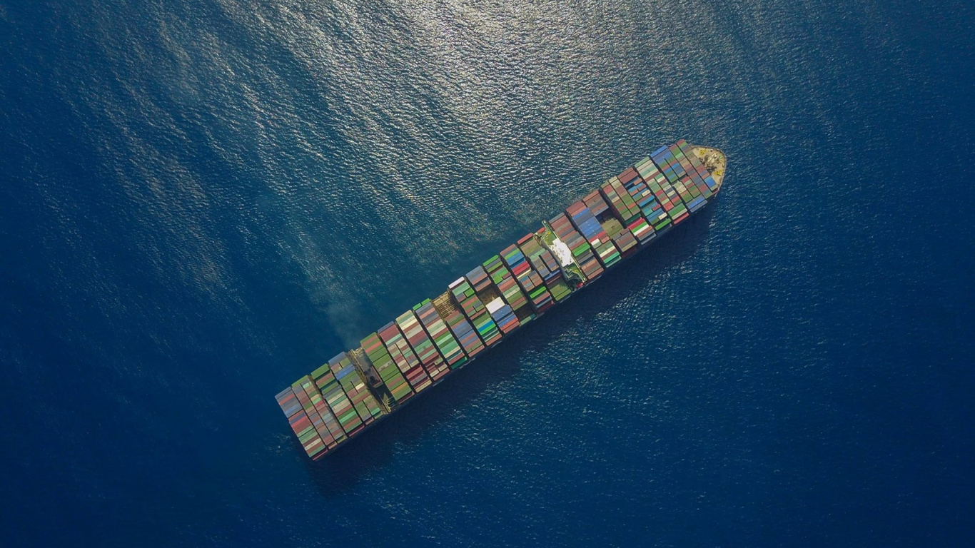 Обои 1366x768 корабль, грузовые перевозки, интермодальный контейнер, грузовое судно, груз, HD ready картинка