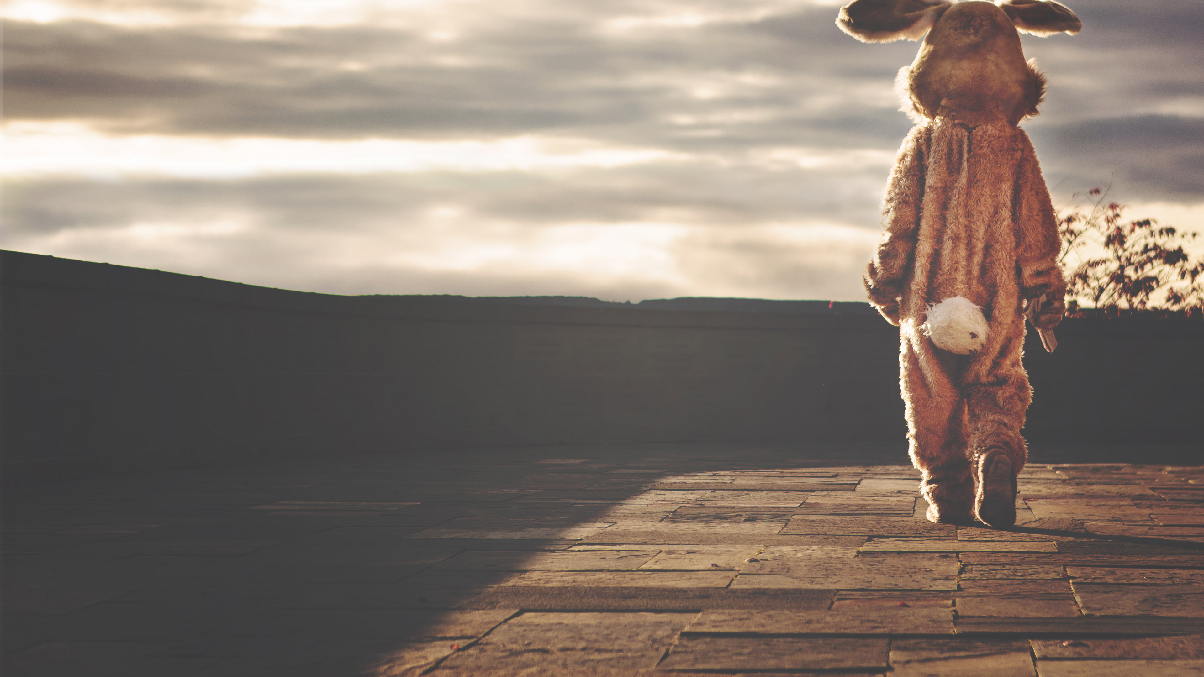 Обои 3840x2160 пейзаж, пасха, олененок, заяц, древесина, 4K Ultra HD картинка