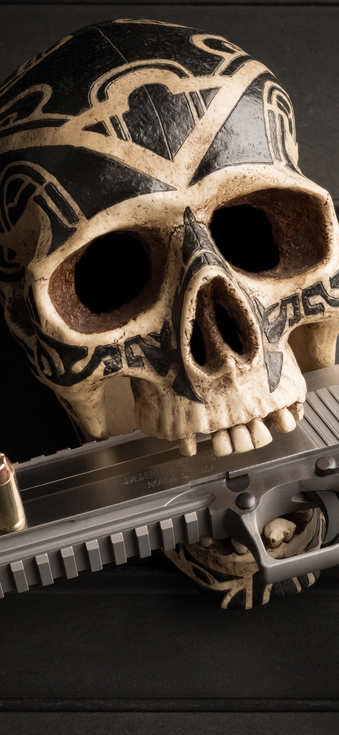Обои орудие, огнестрельное оружие, череп, револьвер, кость для iPhone X / XS, заставка, 1125x2436 картинка