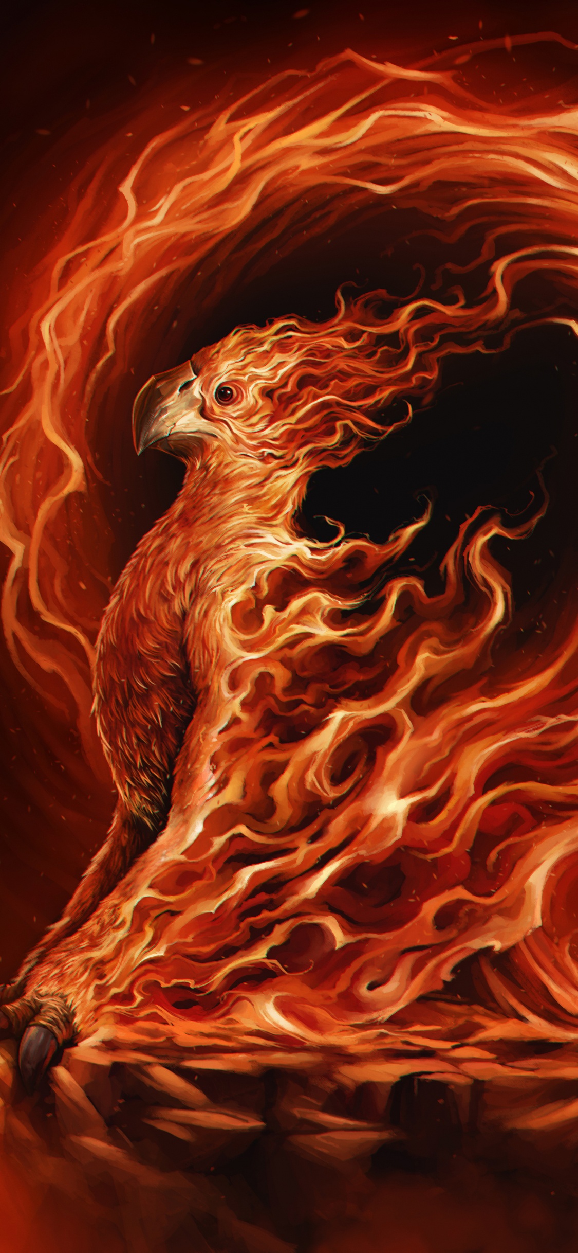 Обои Феникс, арт, артист, тепло, пламя для iPhone X / XS, заставка, 1125x2436 картинка