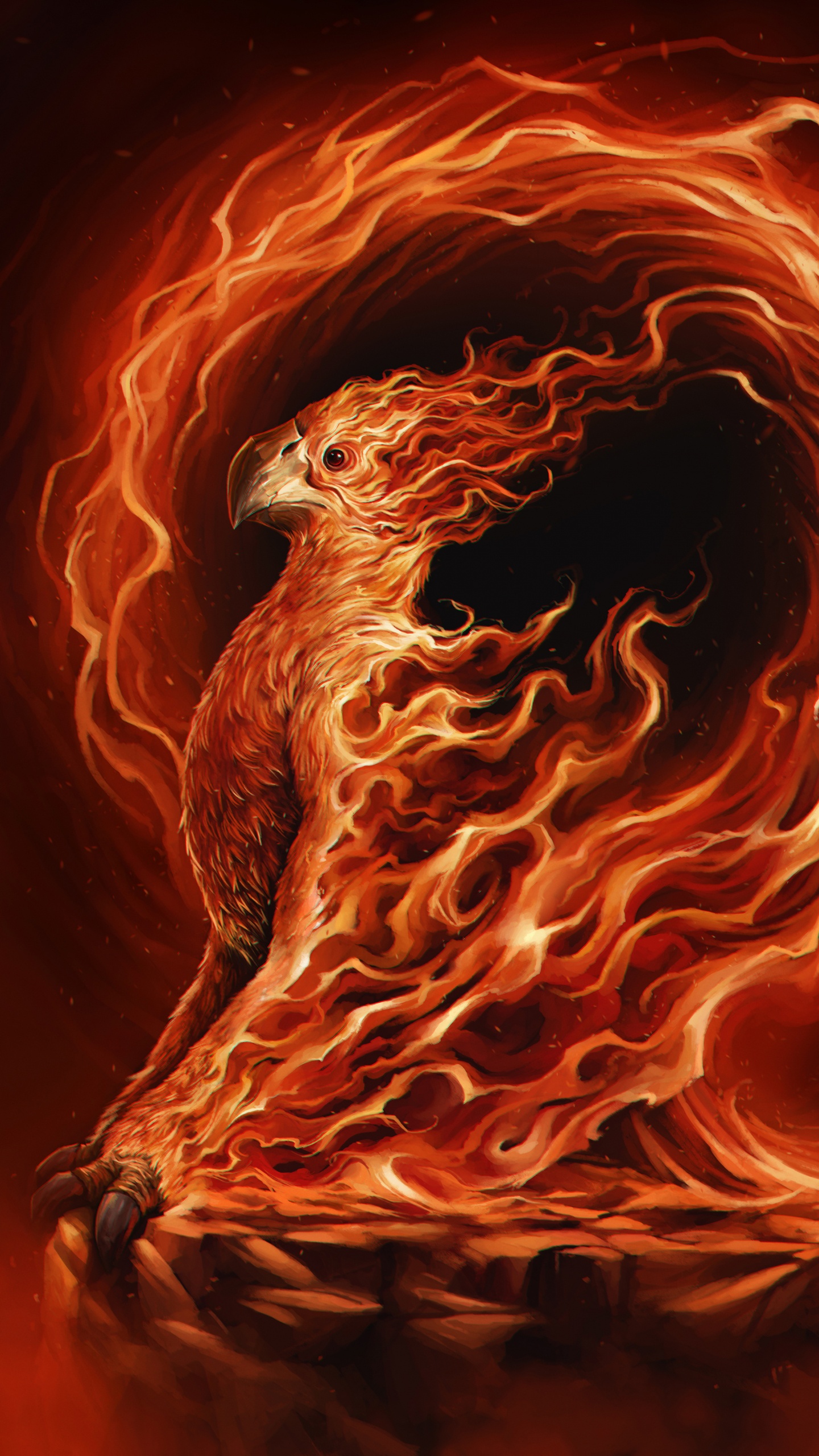 Обои Феникс, арт, артист, тепло, пламя для Google Pixel XL, Meizu Pro 7, Nokia 8, HTC U, Huawei P10 Quad HD, заставка, 1440x2560 картинка