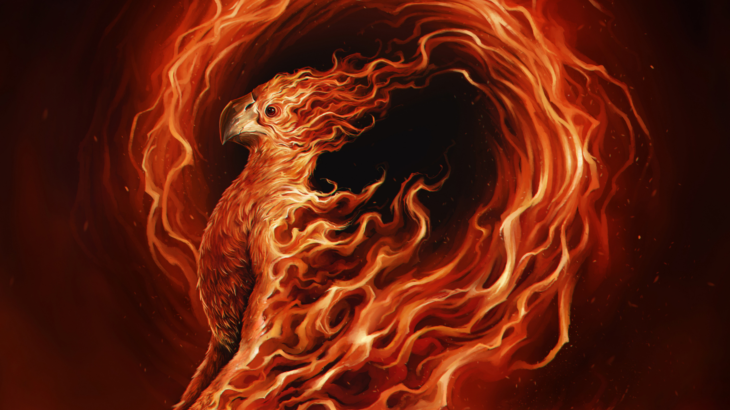 Обои 2560x1440 Феникс, арт, артист, тепло, пламя, WQHD, QHD, 16:9 картинка