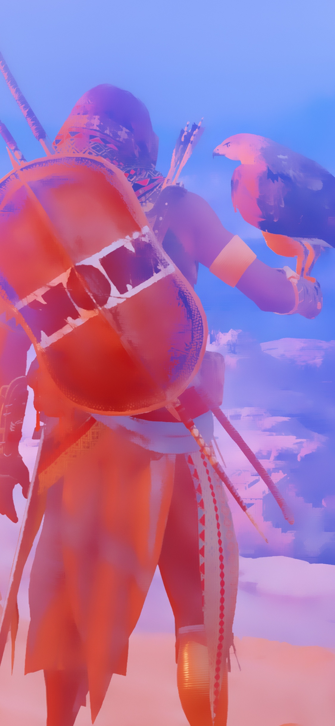 Обои assassins creed origins, иллюстрация, арт, компьютерная игра, небо для iPhone X / XS, заставка, 1125x2436 картинка