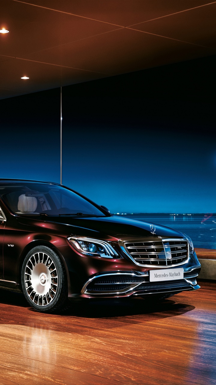 Обои Майбах, авто, Авто шоу, представительский автомобиль, mercedes benz для HD Samsung Galaxy S3/J3/J4/J5, Meizu M5, Sony Xperia L1/L2, заставка, 720x1280 картинка