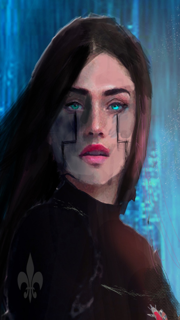 Обои футуристический девушка, арт, произведение искусства, лицо, синий для HD Samsung Galaxy S3/J3/J4/J5, Meizu M5, Sony Xperia L1/L2, заставка, 720x1280 картинка