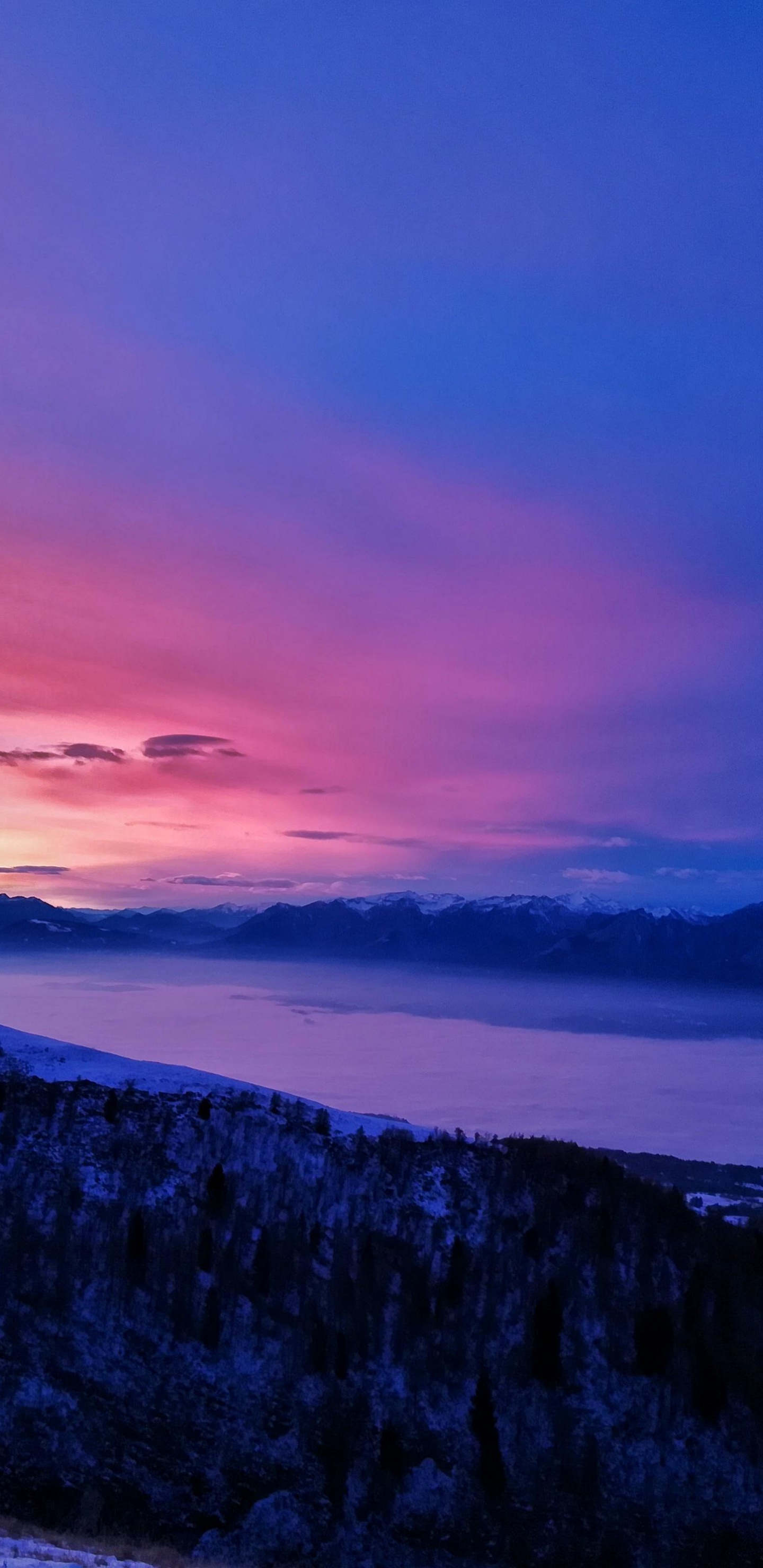 Обои утро, синий, пейзажи гор, море, небо для Samsung Galaxy S8/S8+/S9/S9+/Note 8/Note 9 QHD, заставка, 1440x2960 картинка