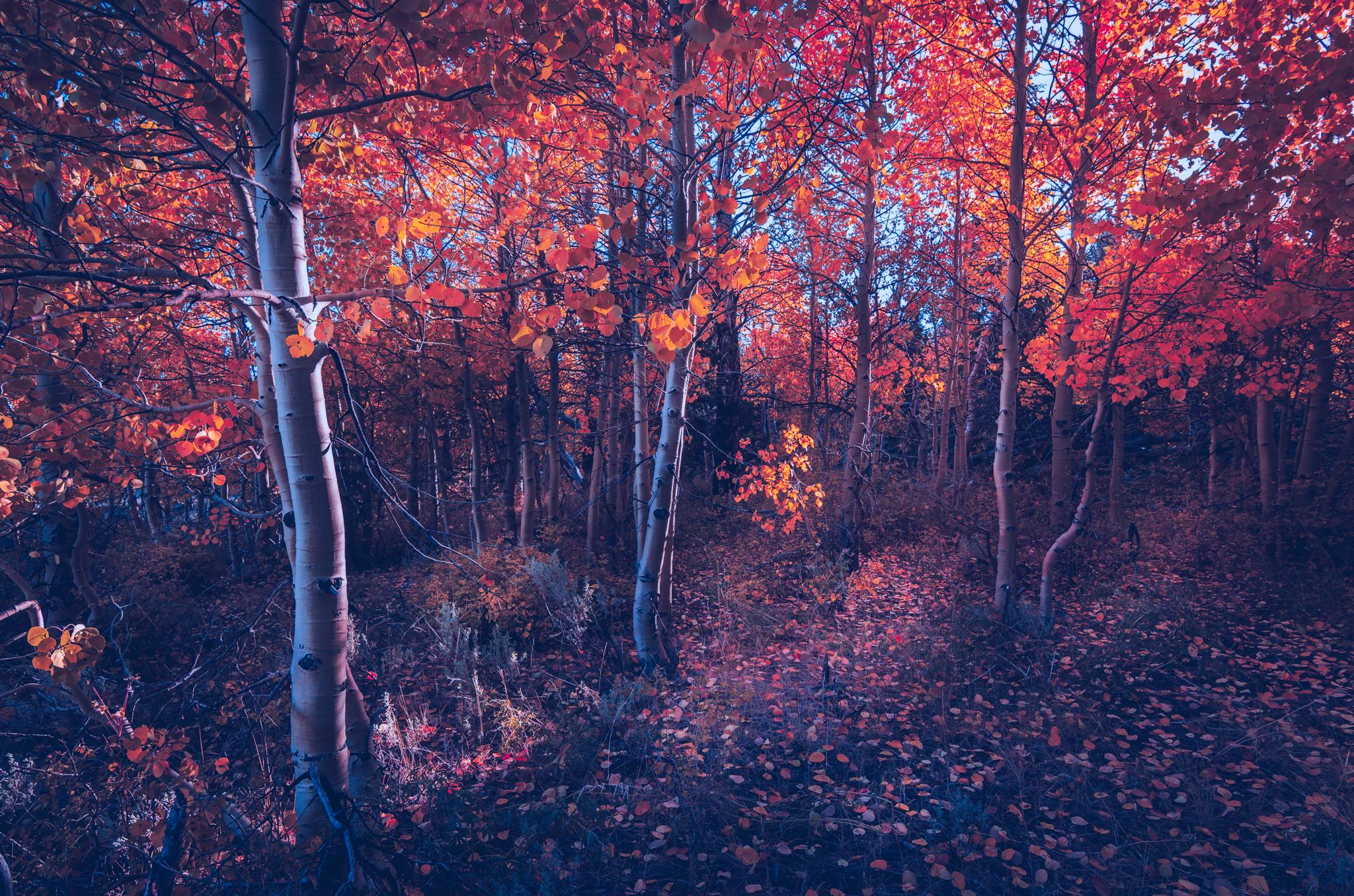 Обои лесистая местность, дерево, природа, красный цвет, природный ландшафт, фото, заставка