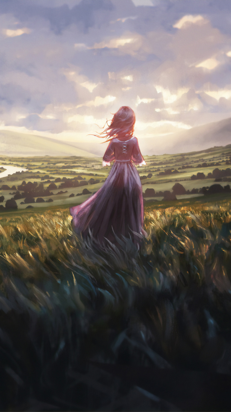 Обои арт, природа, природный ландшафт, живопись, сенокосное угодье для iPhone 6, 6S, 7, 8, заставка, 750x1334 картинка