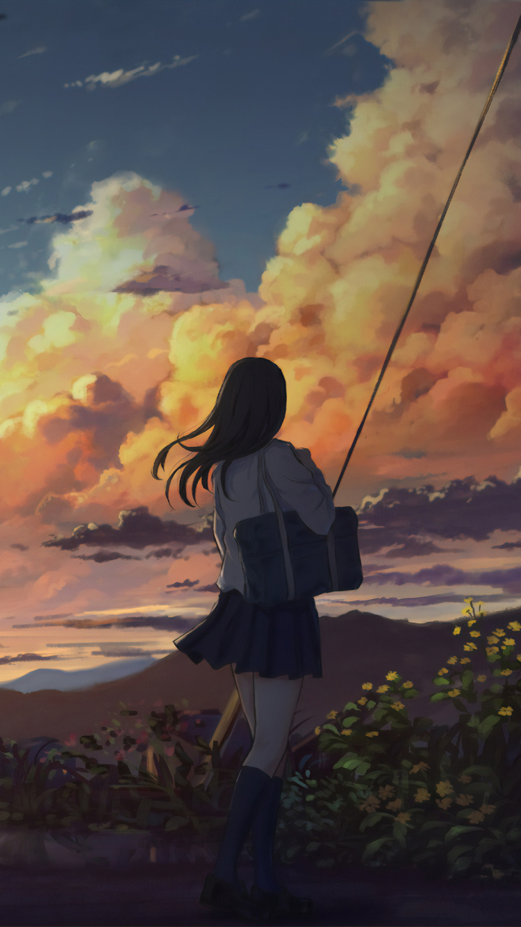 Обои театральные декорации, аниме, пейзаж, живопись, арт для iPhone 6, 6S, 7, 8, заставка, 750x1334 картинка
