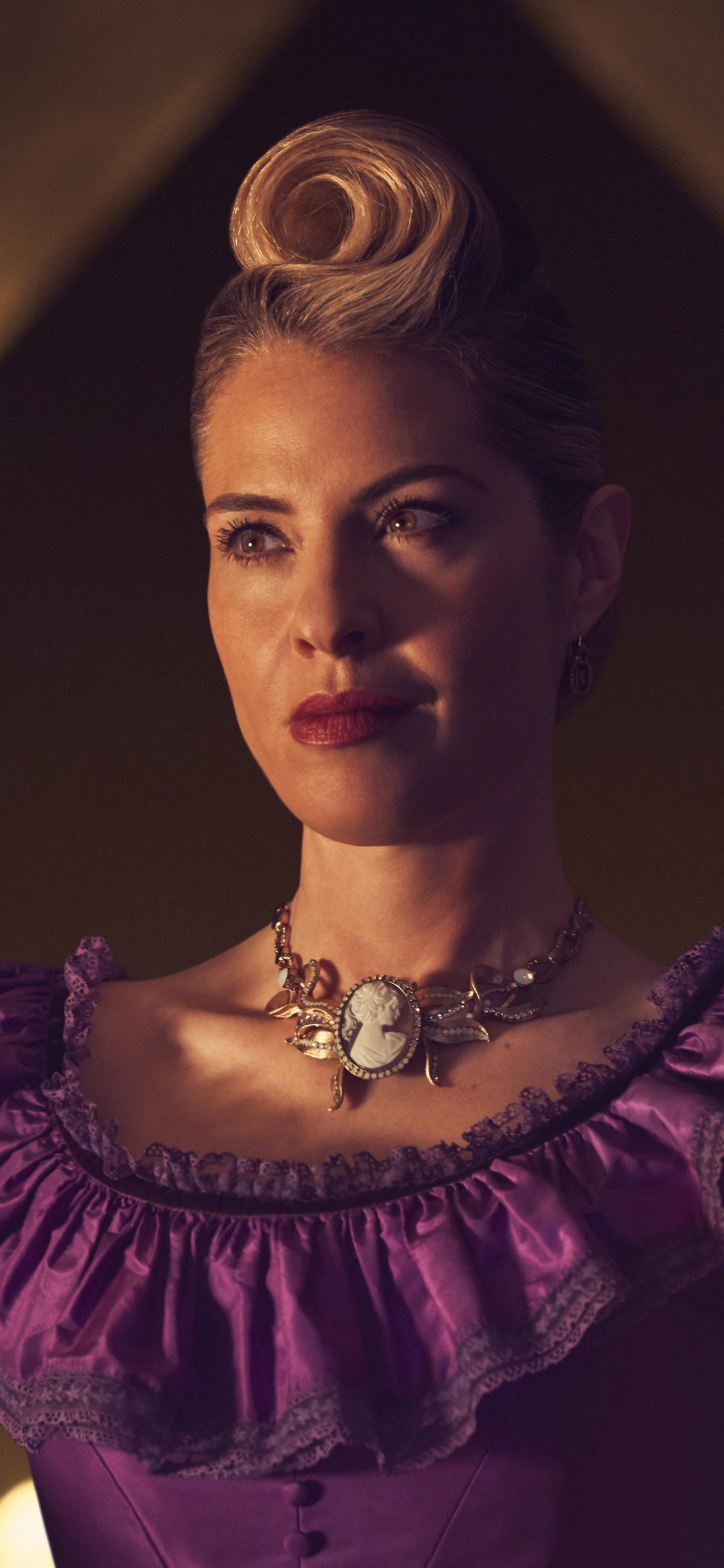 Обои Лесли Гроссман, Американская История Ужасов, пурпур, красота, фэшн для iPhone X / XS, заставка, 1125x2436 картинка