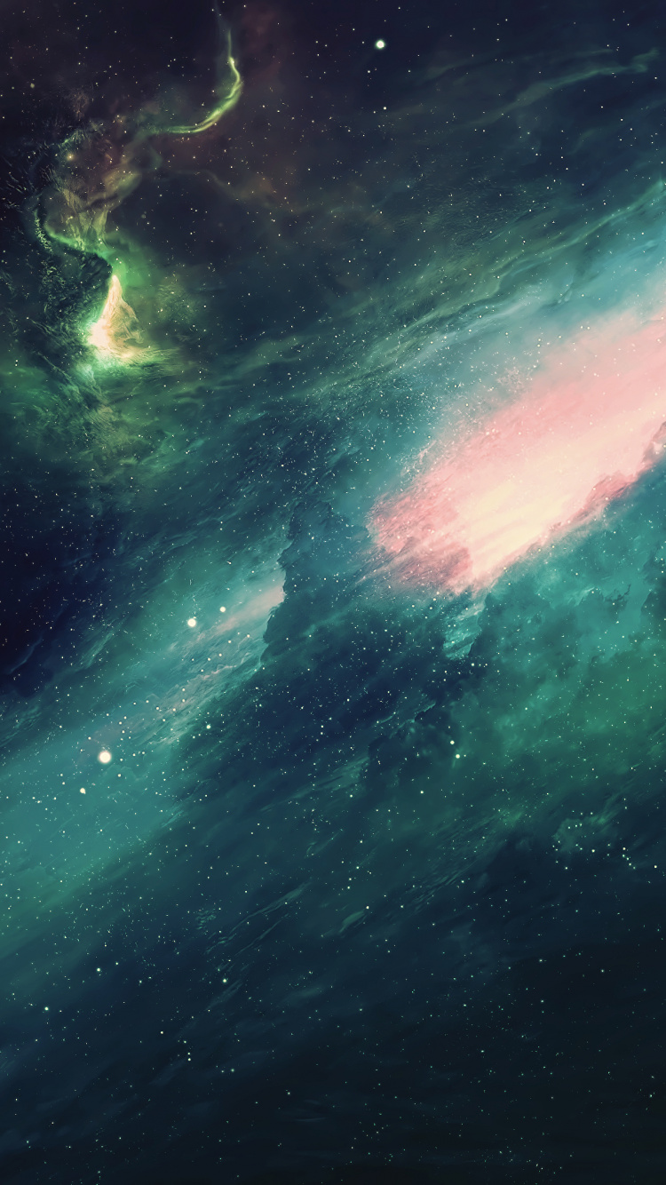 Обои космос, Галактика, зеленый, космическое пространство, туманность для iPhone 6, 6S, 7, 8, заставка, 750x1334 картинка