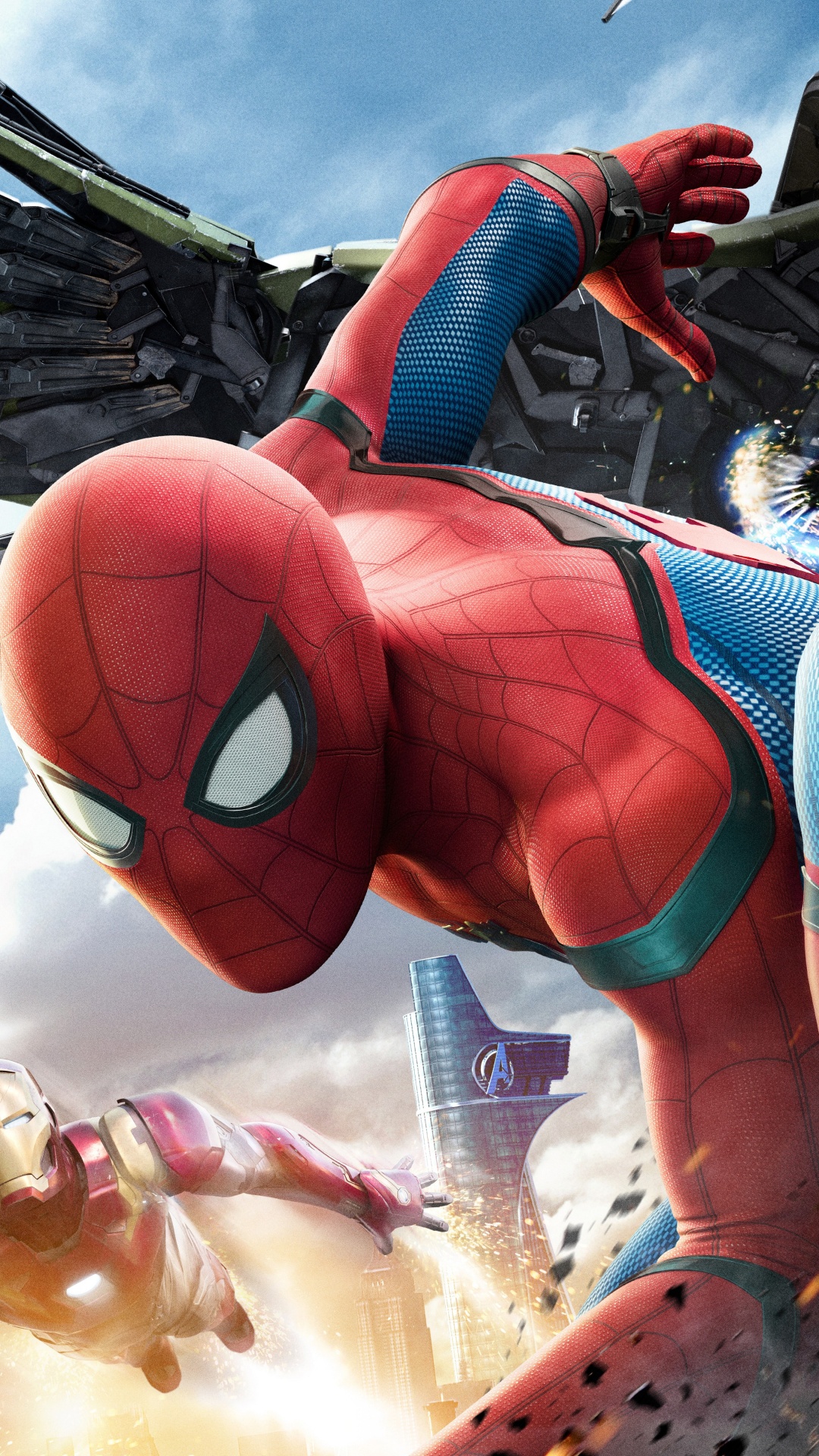 Обои человек-паук, Человек-паук Возвращение домой, Железный человек, супергерой, фигурка на телефон Android, 1080x1920 Full HD картинки