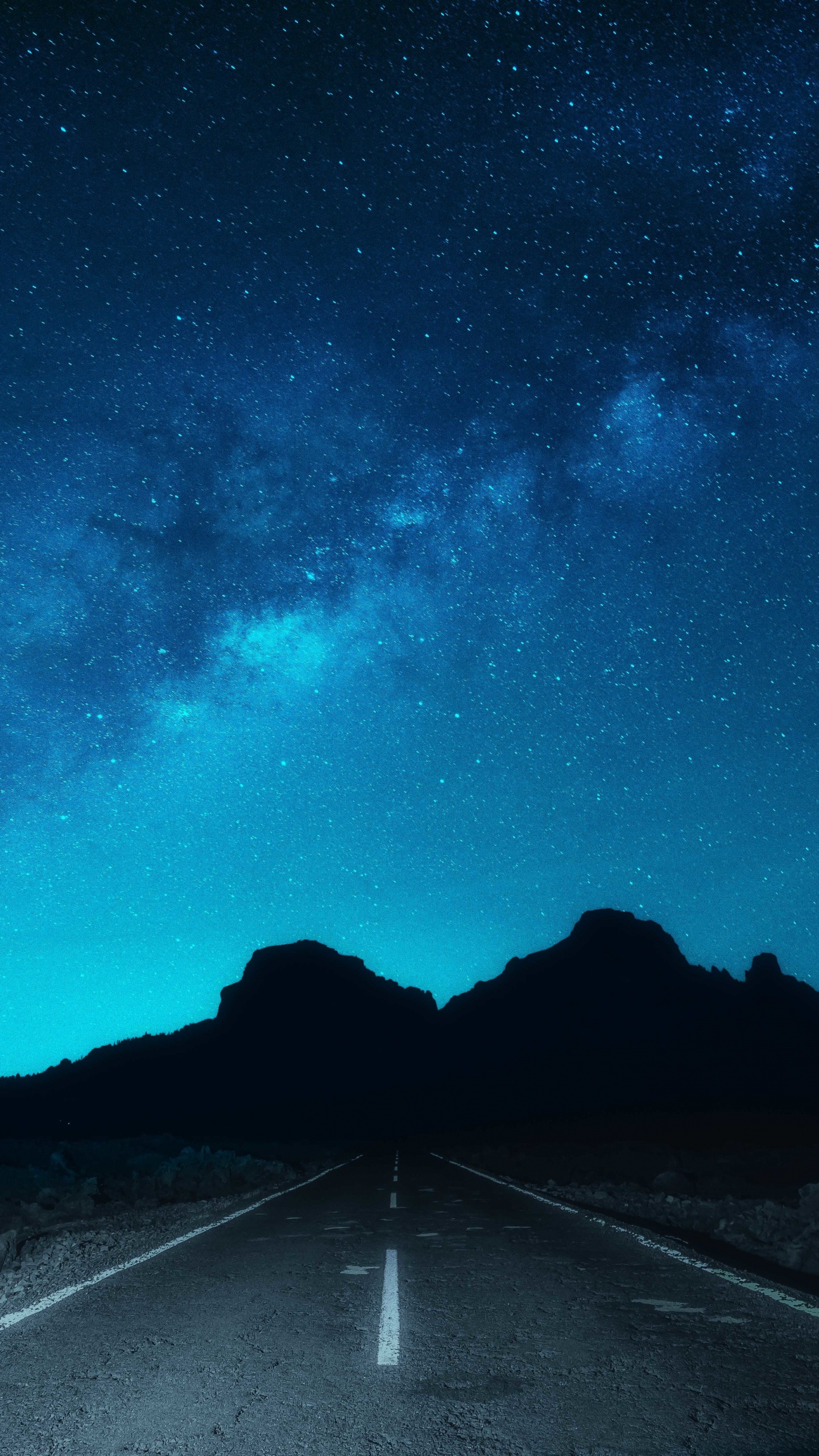 Обои Млечный Путь, синий, ночь, дорога, атмосфера для Google Pixel XL, Meizu Pro 7, Nokia 8, HTC U, Huawei P10 Quad HD, заставка, 1440x2560 картинка