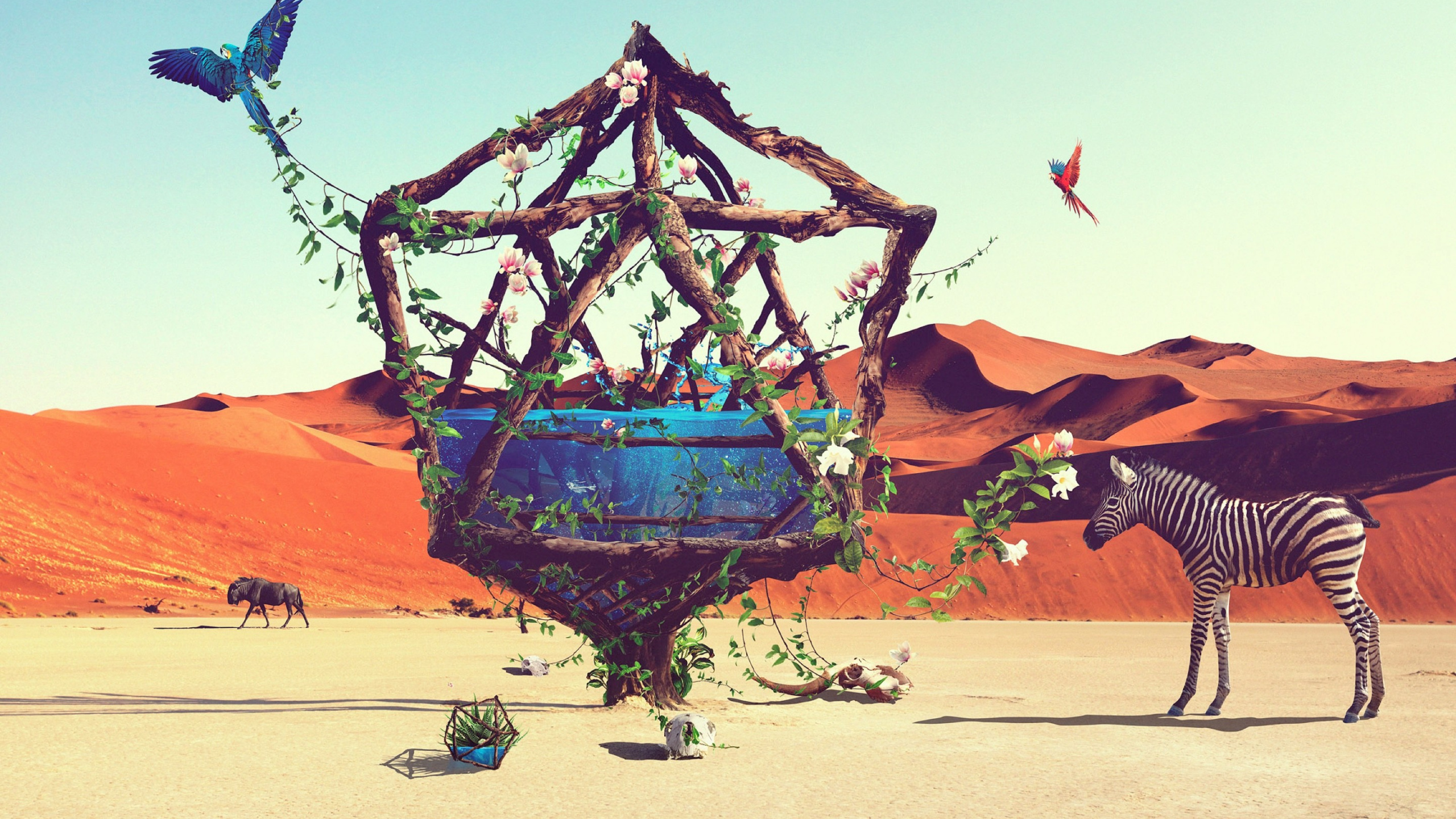 Обои 2560x1440 пустыня, арт, окружающая среда, Жираф, живая природа, WQHD, QHD, 16:9 картинка