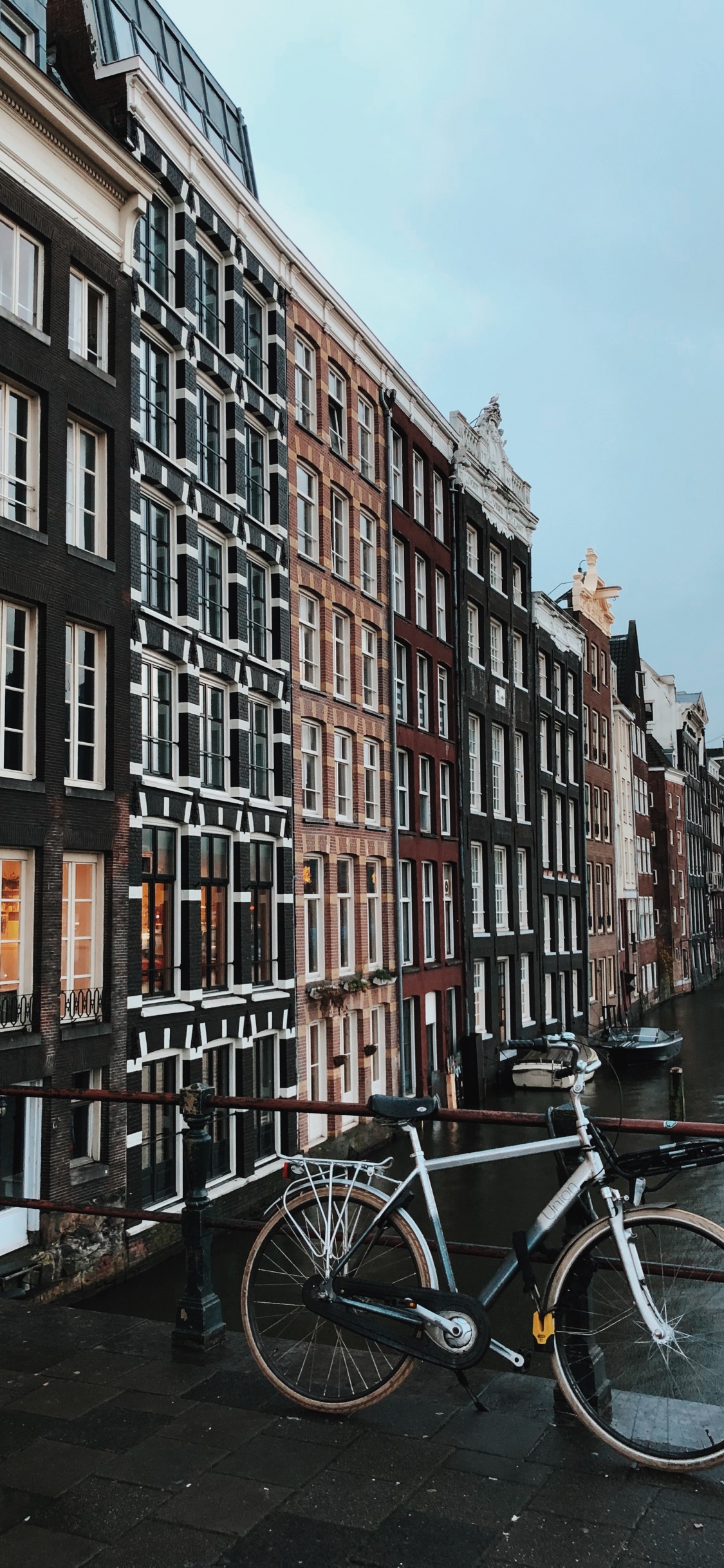 Обои переулок, велосипед, водный путь, канал, соседство для iPhone X / XS, заставка, 1125x2436 картинка