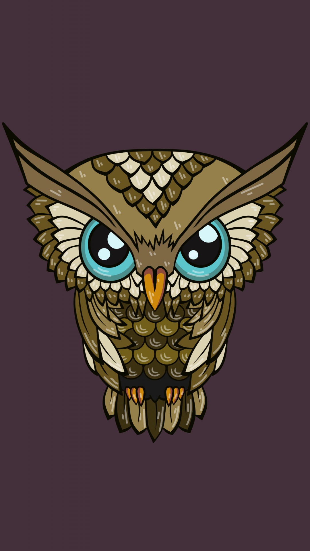 Обои сова, голова, иллюстрация, хищная птица, птица для iPhone 6S+/7+/8+, заставка, 1080x1920 картинка