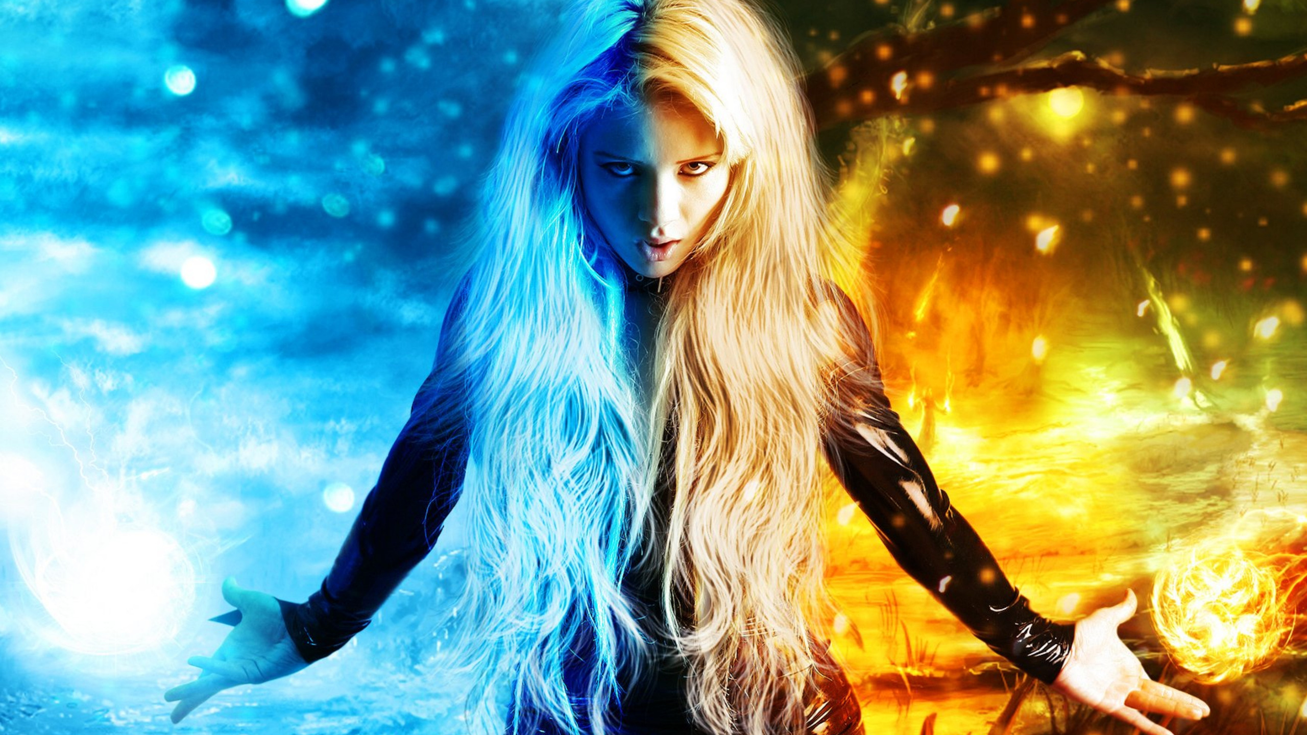 Обои 2560x1440 ледяная девочка, синий, красота, длинные волосы, электрик, WQHD, QHD, 16:9 картинка