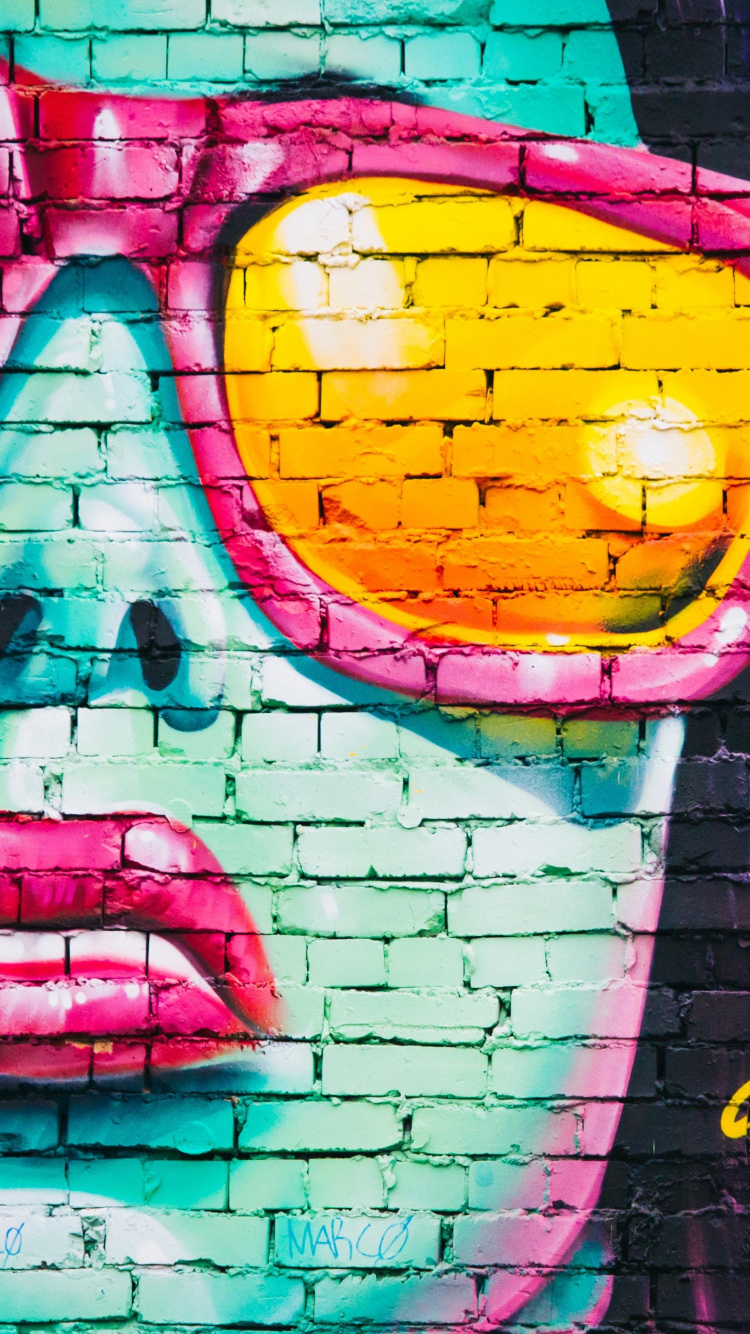Обои Культура, прохлада, солнечные очки, стена, городские граффити для iPhone 6, 6S, 7, 8, заставка, 750x1334 картинка
