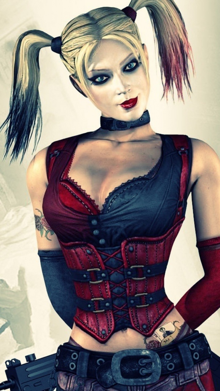 Обои Бэтмен, Харли Квинн Аркхем Сити, рыцарь аркхема, иллюстрация, прохлада для HD Samsung Galaxy S3/J3/J4/J5, Meizu M5, Sony Xperia L1/L2, заставка, 720x1280 картинка