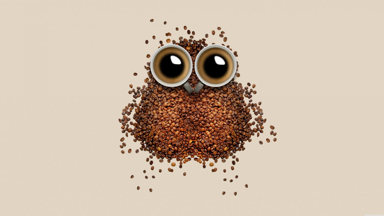 Обои 1280x720 кофе, кофейное зерно, сова, иллюстрация, птица, HD, HDV, 720p, 16:9 картинка