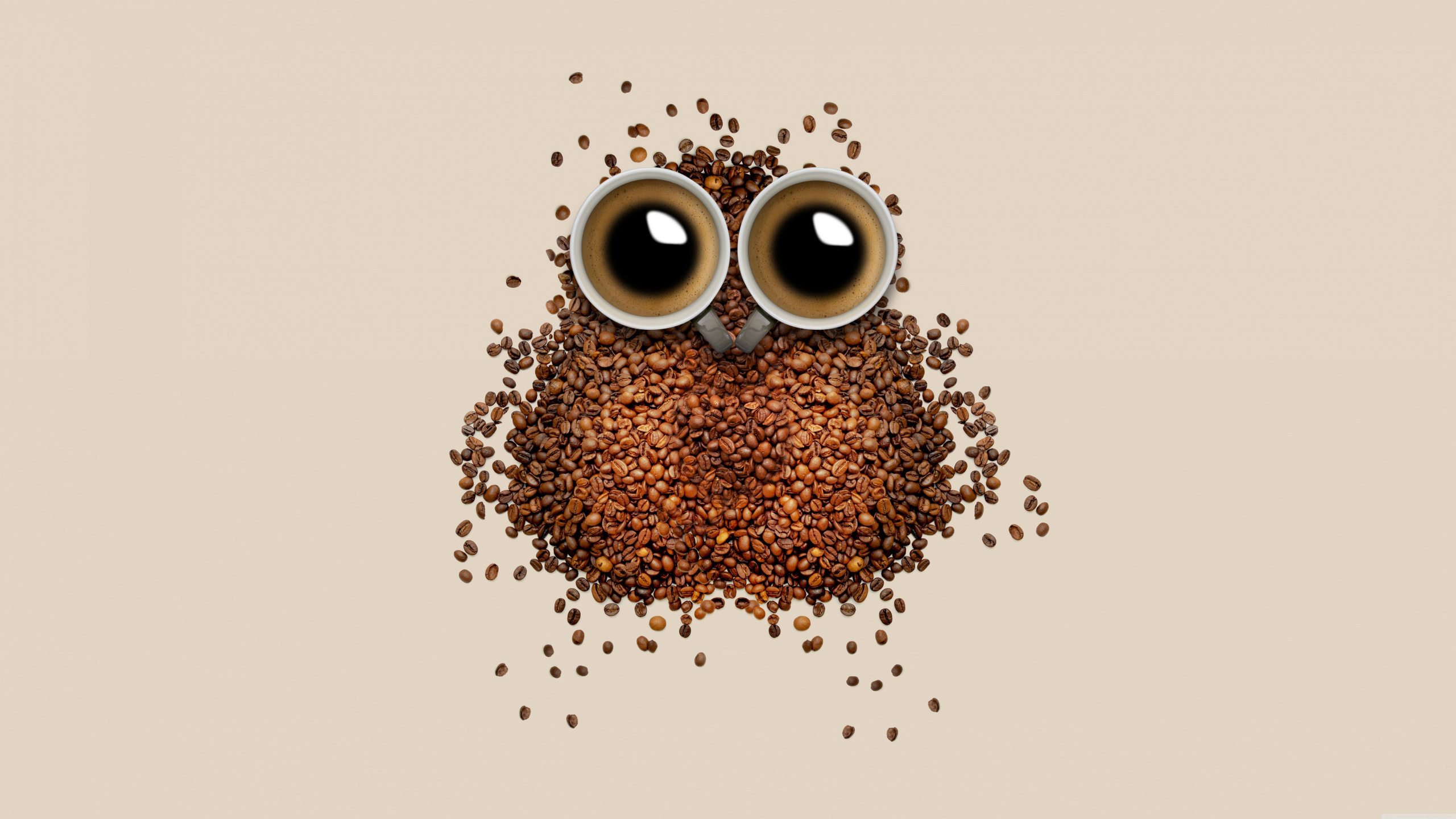 Обои 2560x1440 кофе, кофейное зерно, сова, иллюстрация, птица, WQHD, QHD, 16:9 картинка