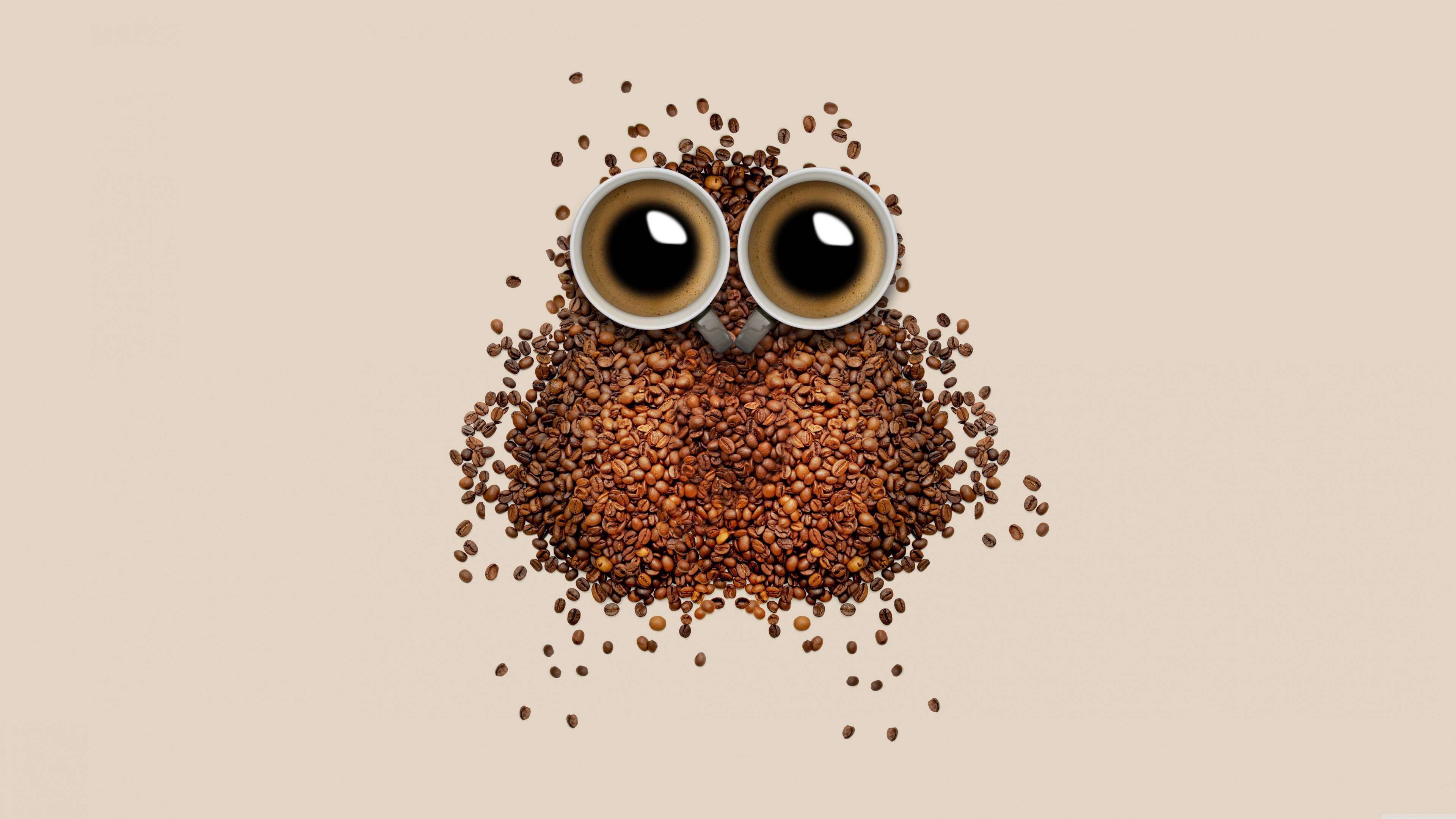 Обои 3840x2160 кофе, кофейное зерно, сова, иллюстрация, птица, 4K Ultra HD картинка