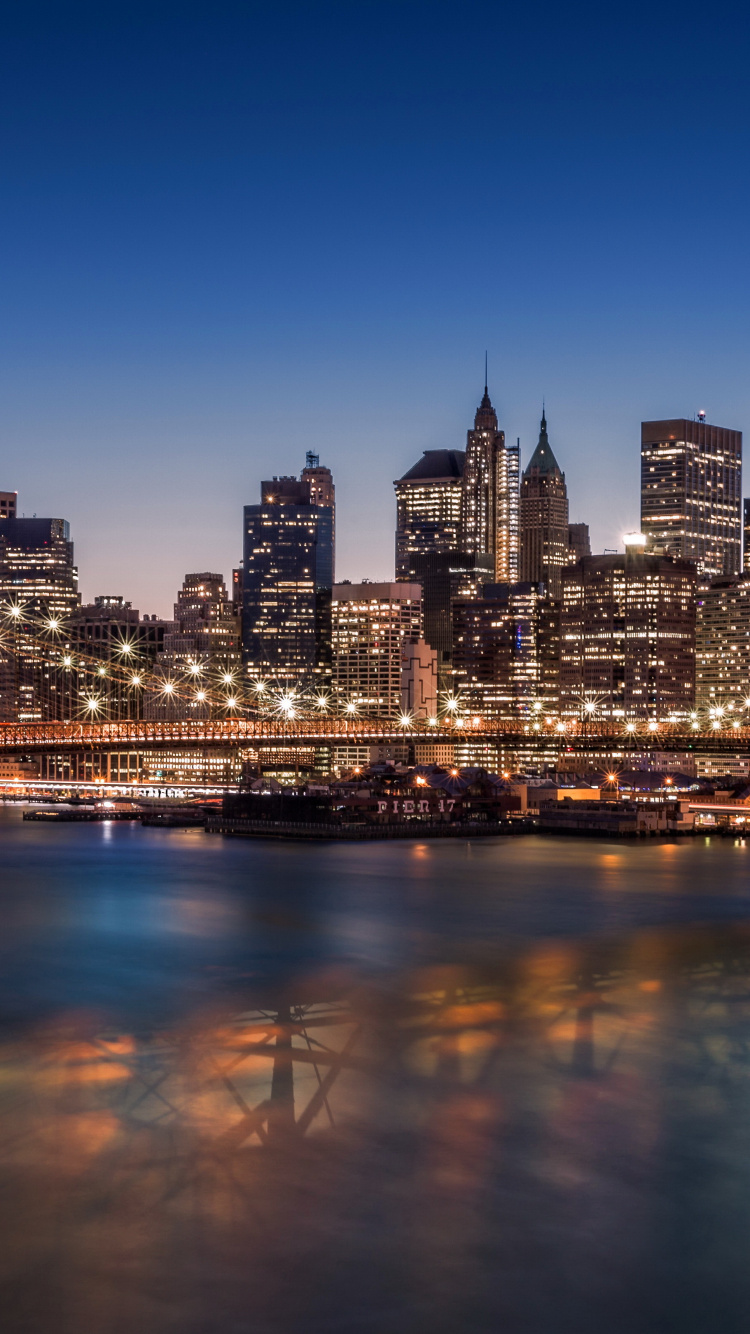 Обои метраж, небоскреб, небо, Бруклинский мост, городской район для iPhone 6, 6S, 7, 8, заставка, 750x1334 картинка