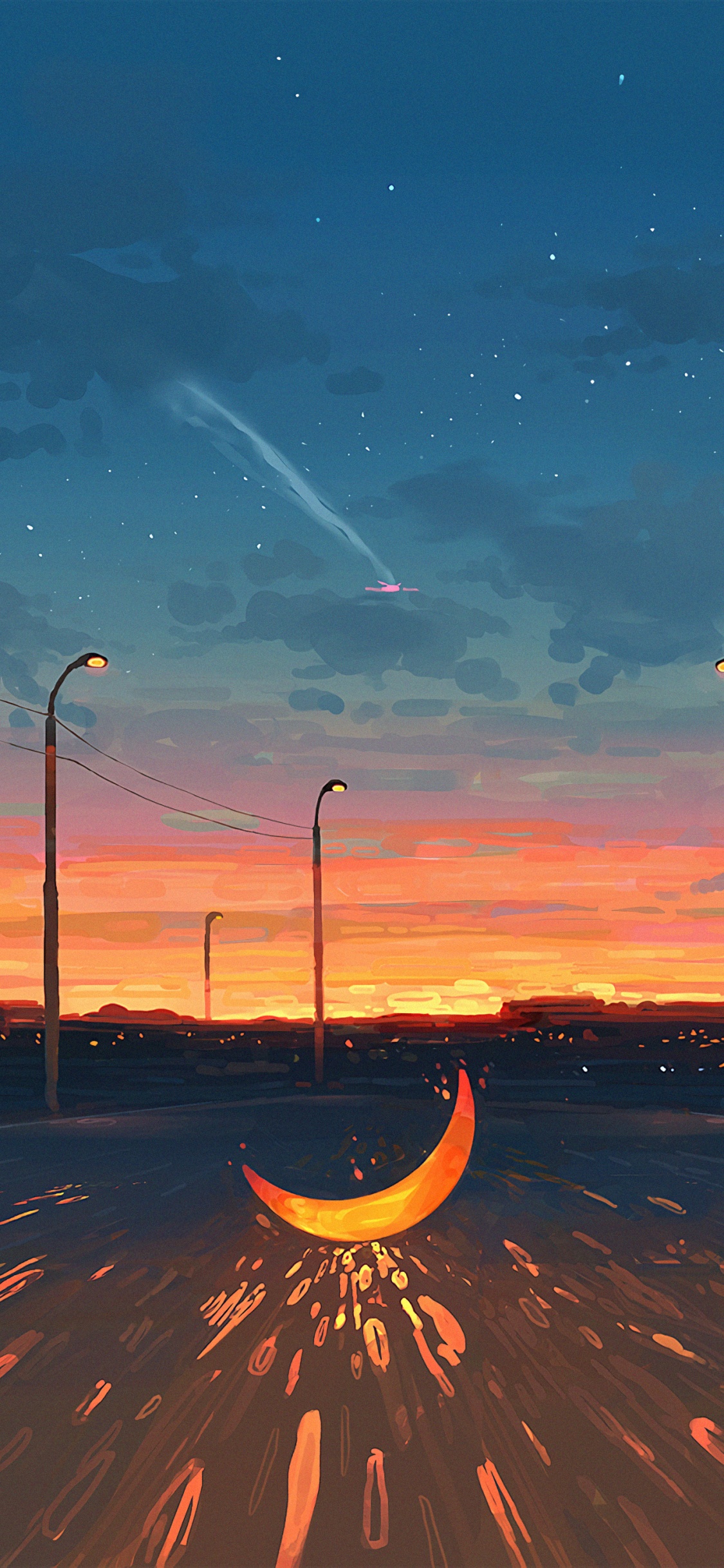 Обои арт, горизонт, облако, вечер, ночь для iPhone X / XS, заставка, 1125x2436 картинка