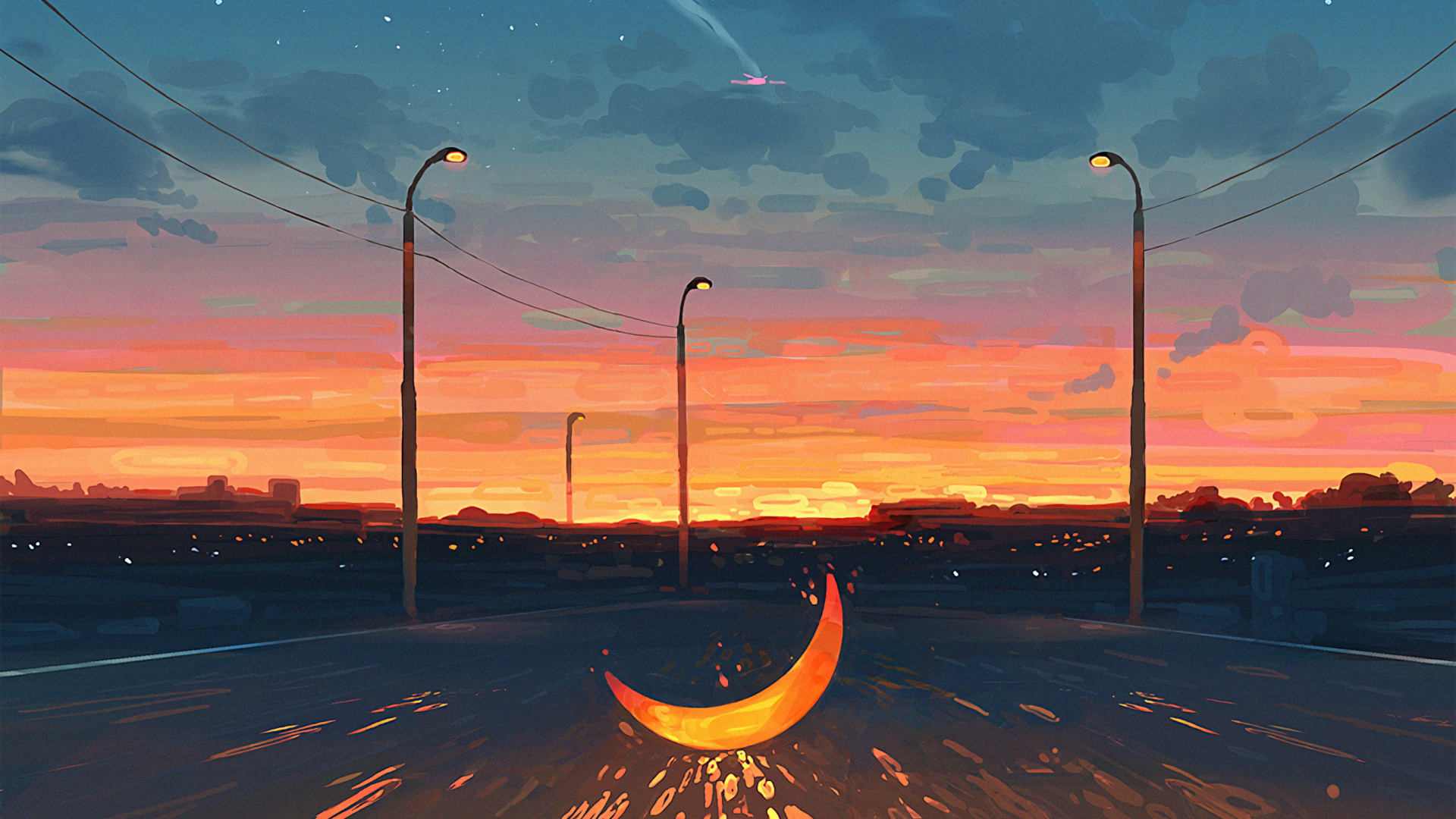 Обои 1920x1080 арт, горизонт, облако, вечер, ночь, Full HD, HDTV, 1080p 16:9 картинка