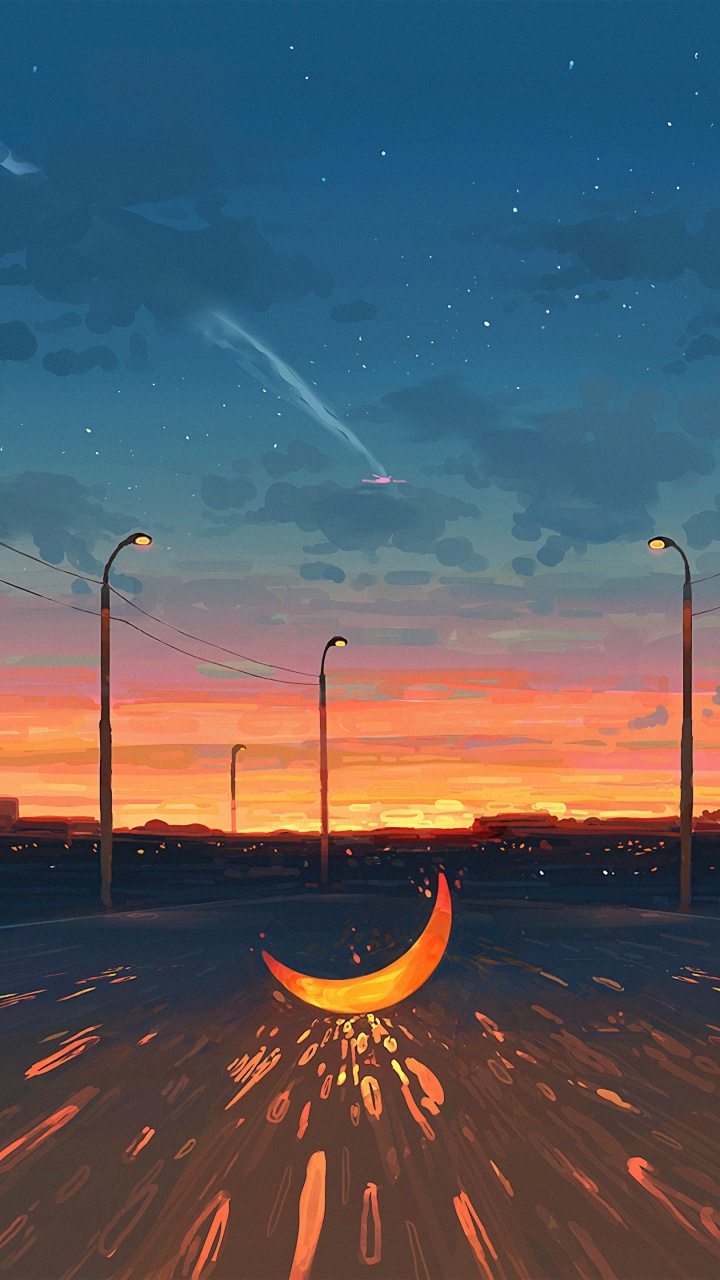 Обои арт, горизонт, облако, вечер, ночь для HD Samsung Galaxy S3/J3/J4/J5, Meizu M5, Sony Xperia L1/L2, заставка, 720x1280 картинка