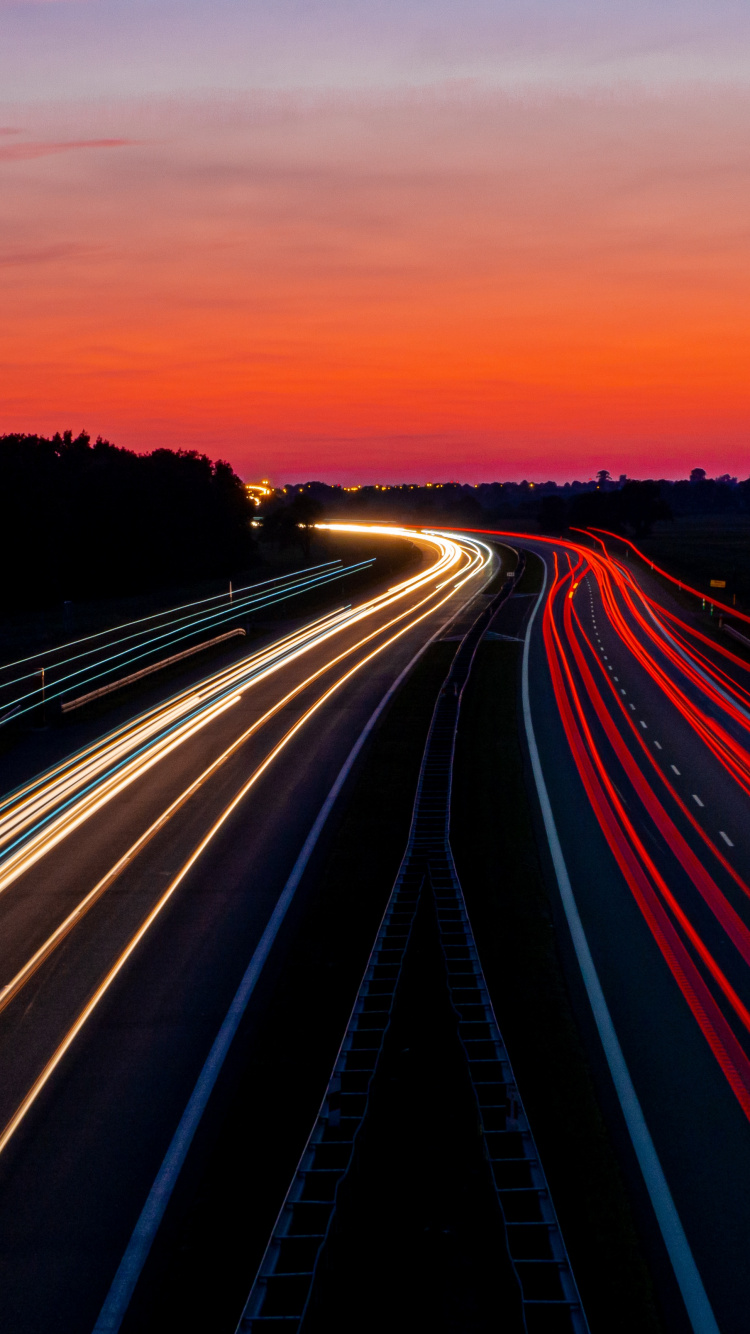 Обои дорога, магистраль, автострада, красный цвет, горизонт для iPhone 6, 6S, 7, 8, заставка, 750x1334 картинка