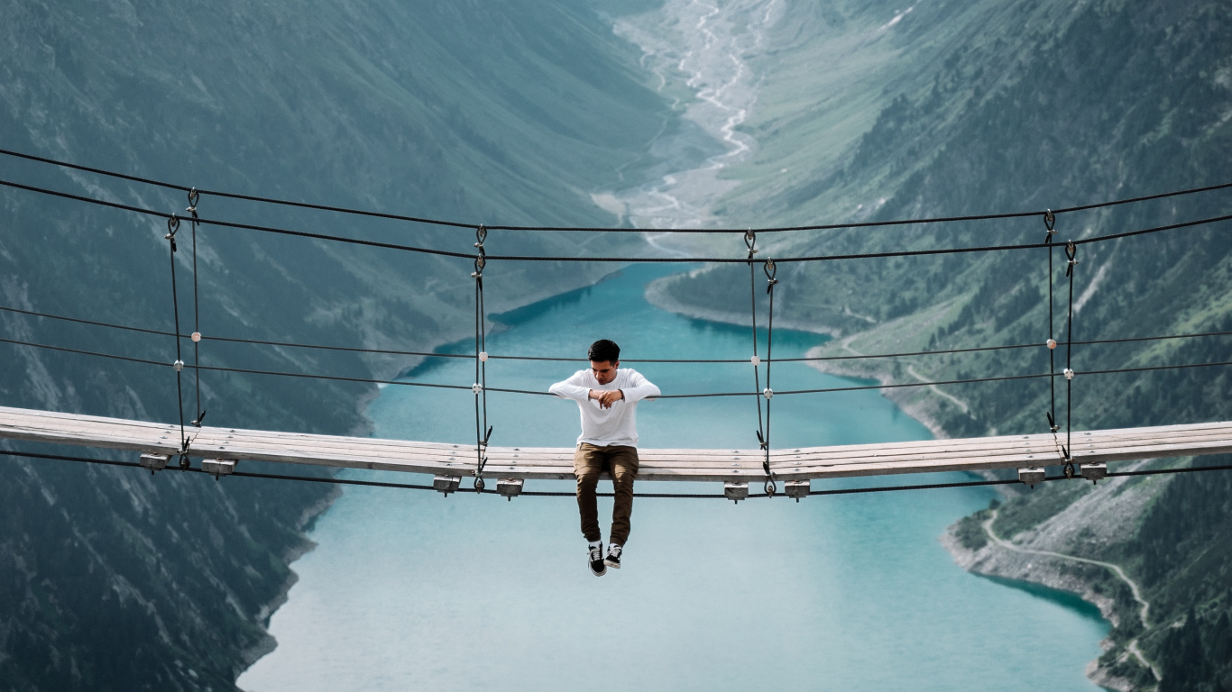 Обои 1366x768 гора, ледяная форма, фьорд, горный рельеф, отражение, HD ready картинка