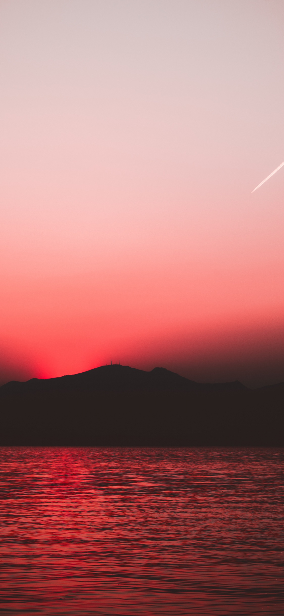 Обои горизонт, послесвечение, красный цвет, закат, море для iPhone X / XS, заставка, 1125x2436 картинка