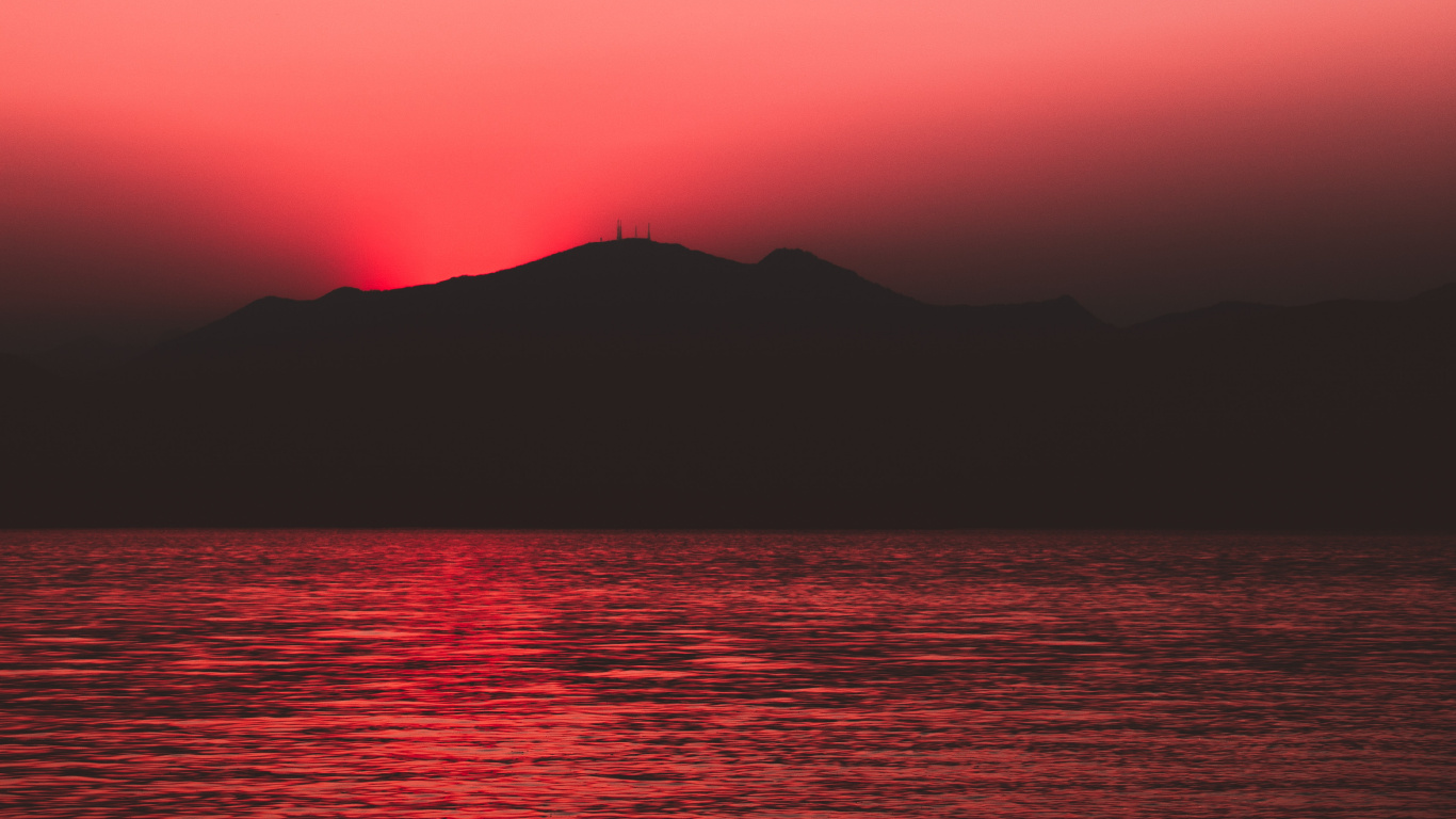 Обои 1366x768 горизонт, послесвечение, красный цвет, закат, море, HD ready картинка
