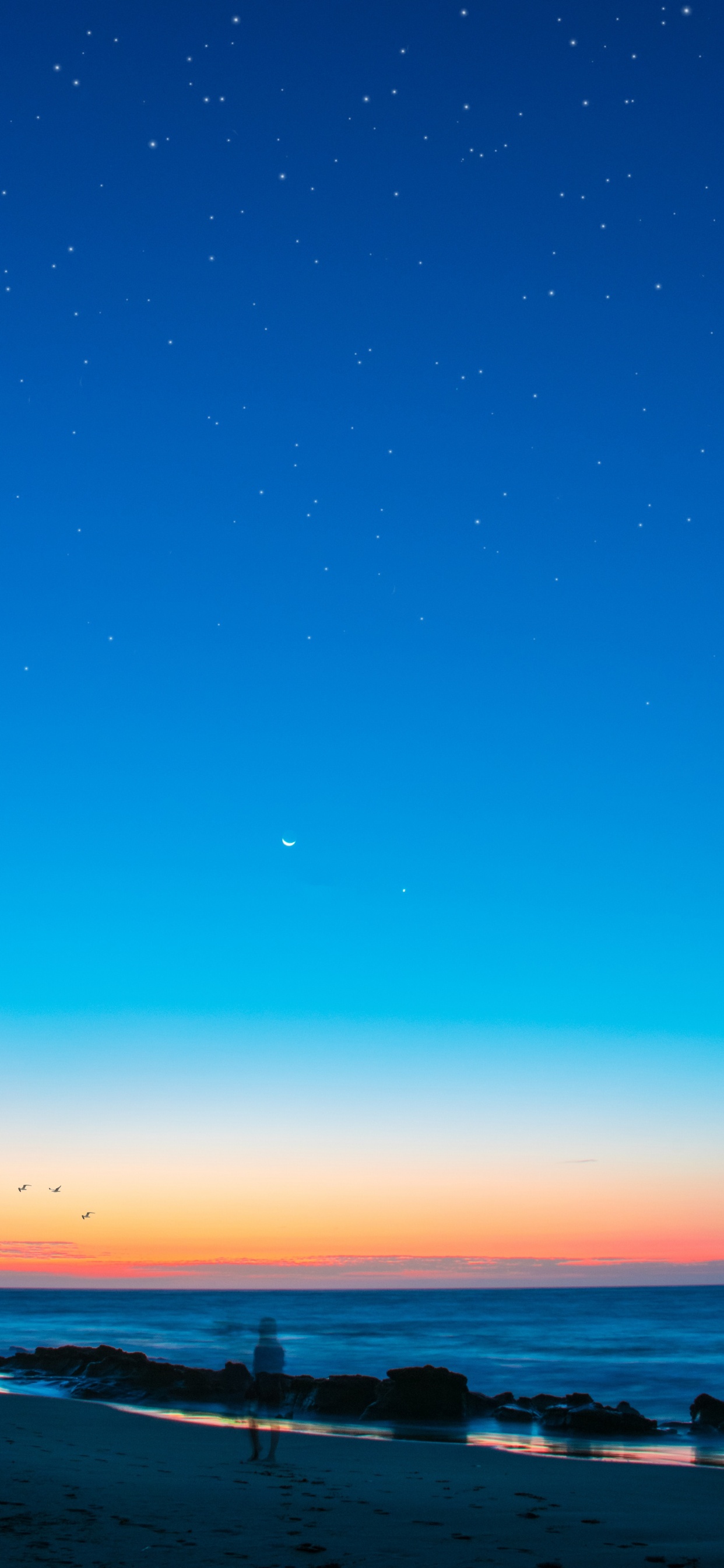 Обои горизонт, синий, море, океан, атмосфера для iPhone XS Max, заставка, 1242x2688 картинка