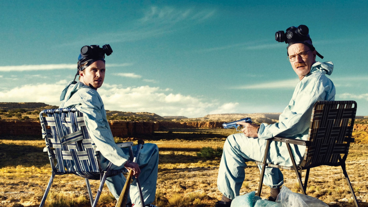 Обои 1280x720 Аарон Пол, Брайан Крэнстон, Во все тяжкие, Джесси Пинкман, Уолтер Уайт, HD, HDV, 720p, 16:9 картинка