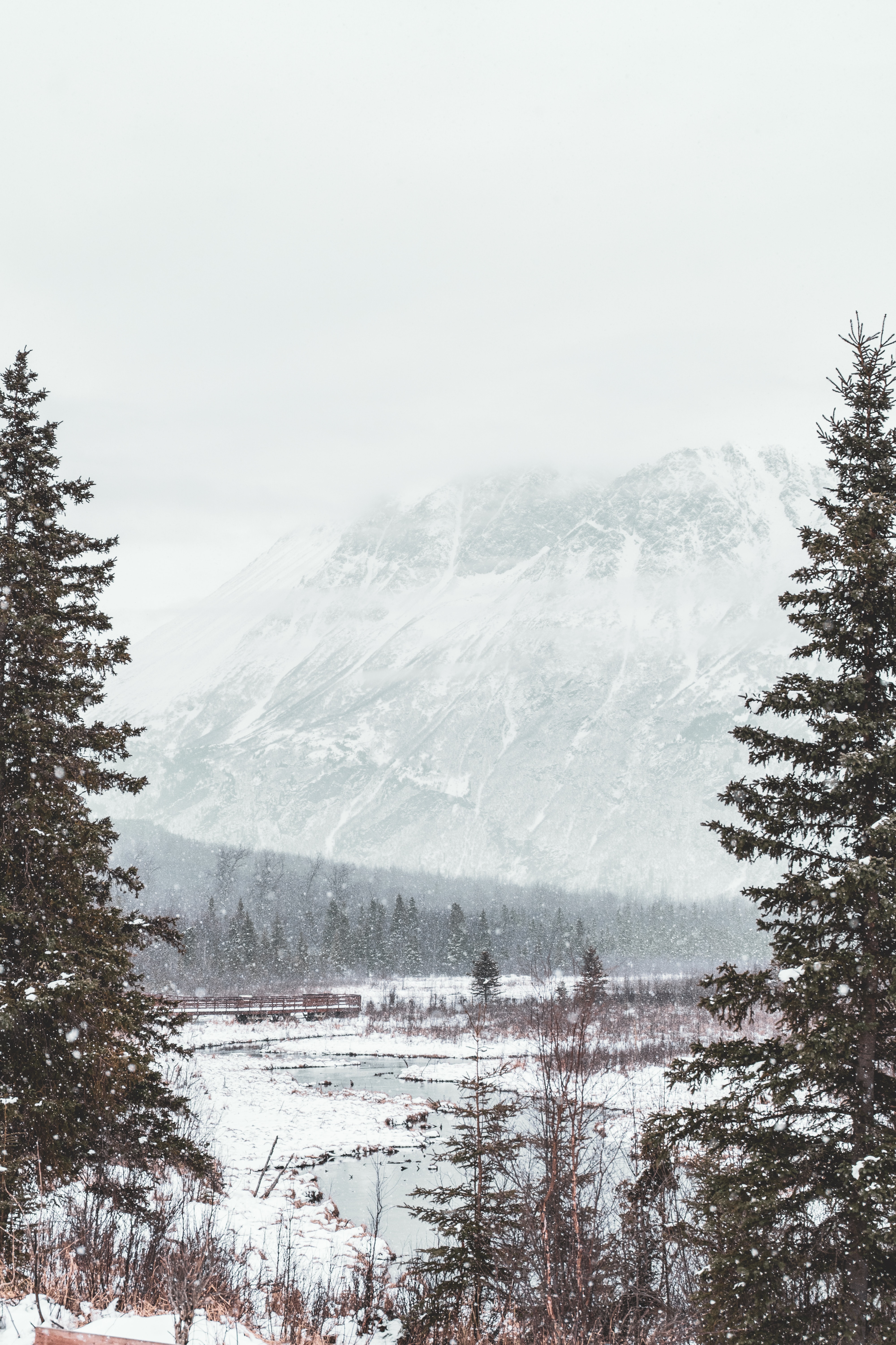 Обои снег, зима, дерево, замораживание, гора, фото, заставка