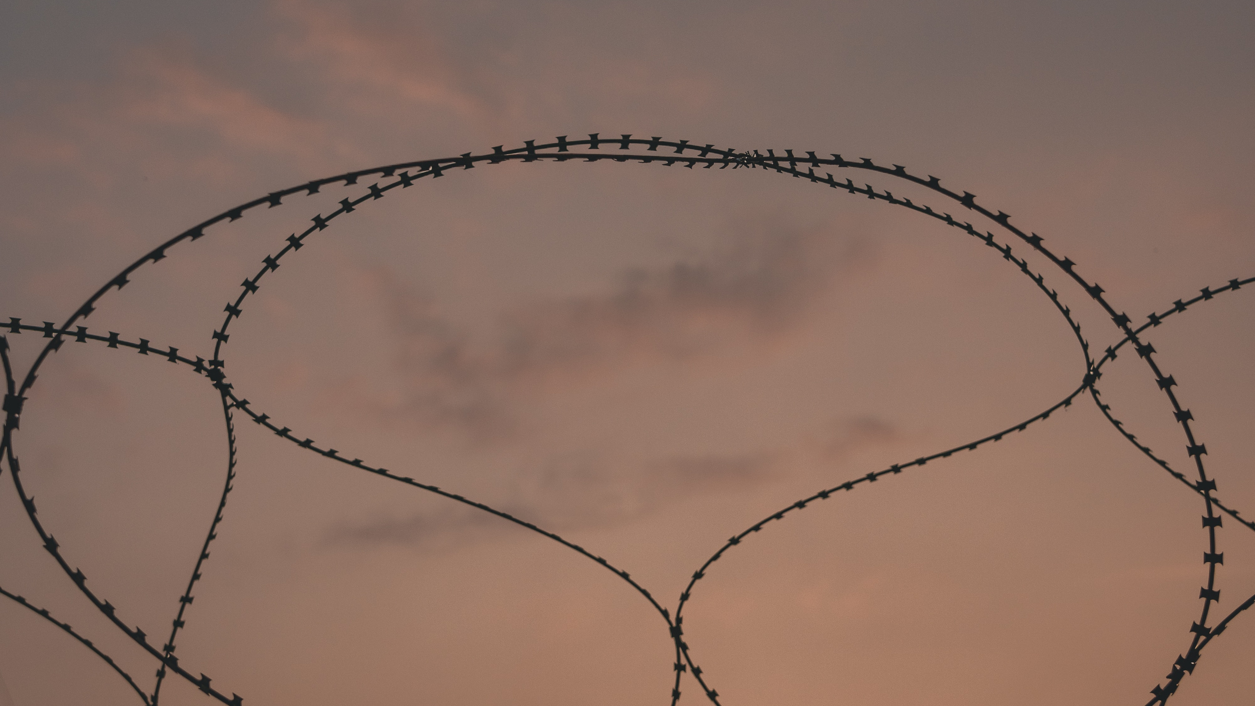 Обои 2560x1440 колючая проволока, провод, забор, ограждать провода, облако, WQHD, QHD, 16:9 картинка