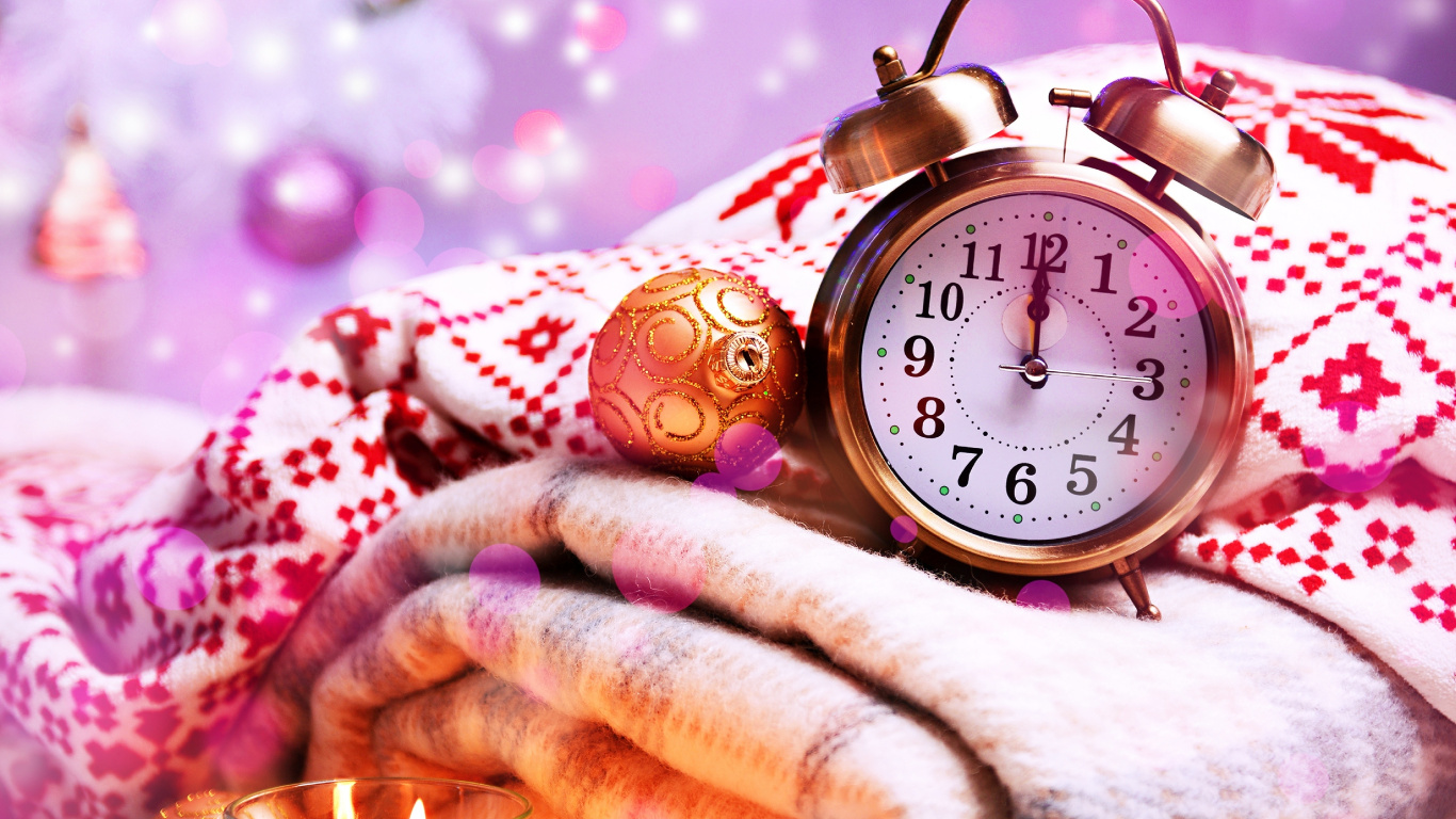 Обои 1366x768 Новый год, Рождественский день, праздник, будильник, часы, HD ready картинка